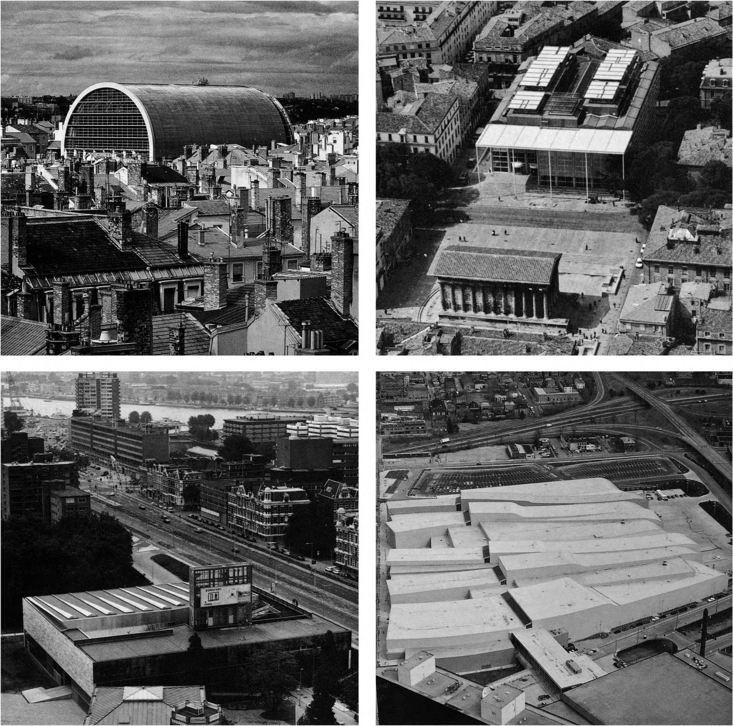 Over the old roofs of Europe rise huge intrepid vaults, cathedrals for the spectacle of culture, beached transatlantics o f a media cult, technological temples of the modem promise. In the clashing juxtapositions of Lyon and Nimes, Jean Nouve’s new opera house and Norman Foster's media library face up to historic memory with elegant determination: one crowns the preexisting building with an impeccable half-barrel; the other confronts the Maison Carrée with a glass prism and a slender metal portico.