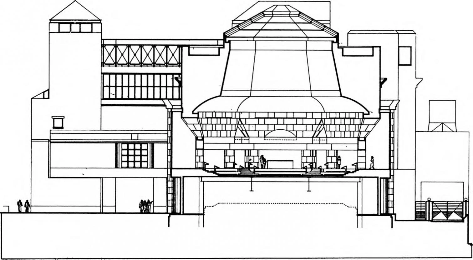 Sacred architecture continues to use theatrical rhetoric, whether figurative or abstract, in works like the Holocaust Memorial in Washington, by James Ingo Freed, or the Water Temple in Hyogo, Japan, by Tadao Ando.
