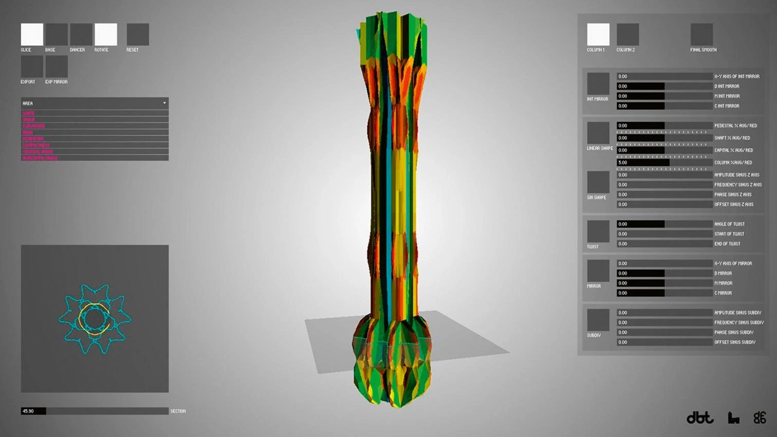 Students of the Master of Advanced Studies in Digital Fabrication and Architecture program at Eidgenössische Technische Hochschule (ETH) Zürich have built ‘Concrete Choreoraphy,’ an installation of columns made of special concrete with the assistance of computational design tools and 3D-printing robot arms. Thought out to frame and inform dance performances, the mostly hollow columns have organic shapes. In the tradition of biomimetics, their upper segments recall the trunks of ficus plants or baobabs, if not the bones, joints, and tendons of animals, and the bottom parts evoke the legs of elephants. Their texture is likewise pachydermic, made as they are of diminutive, 5-millimeter layers of wrinkled material deposited by the robot arm, with no need to use formworks or molds. Might this just be what the future has in store for construction?