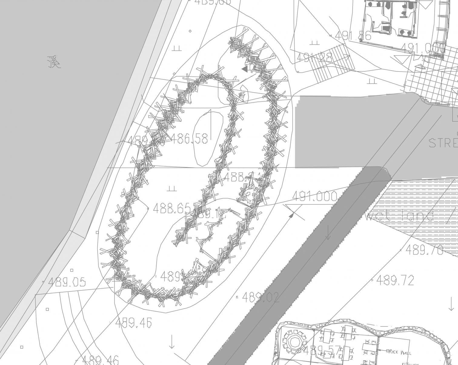Kengo Kuma was in charge of the design of the Contemporary Celadon Ceramic Art Museum and a public washroom nearby. Originally, Kuma intended to use heavy bamboo to build both buildings, but later he chose to use wood in the Art Museum and heavy bamboo in the washroom. Both constructions share a similar building logic. Through the dislocation and overlapping of heavy bamboo and wood pieces, he managed to build a continuous curved wall with many small openings, which enhance the mobility of space.