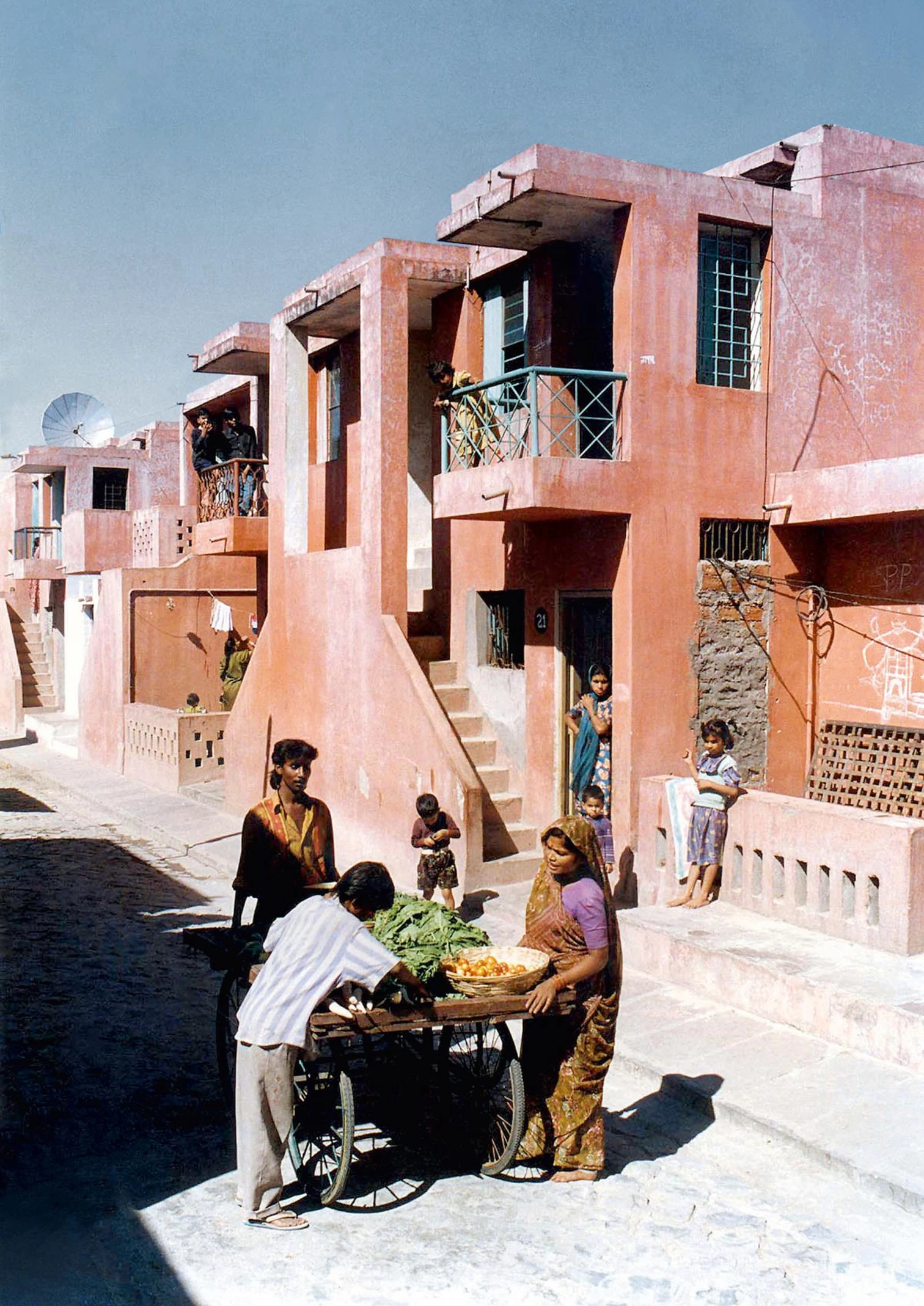 The project was significant because it was to house about 7,000 families on an 80-hectare site and 60% of the housing was reserved for very poor inhabitants. It was projected for a population of 65,000. Today the population has surpassed 80,000. I collaborated with him on the project. We did studies on Indore’s informal settlements, documented in a series of publications titled How the Other Half Builds. We showed that squatters develop distinct settlement patterns in response to their lifestyle, spatial requirements, and economic needs. Doshi and his design team responded to these and other findings by creating a framework for housing that users could slowly fill in and build on. The team set up a robust urban and domestic armature which absorbs additions and cumulative changes without losing its identity.