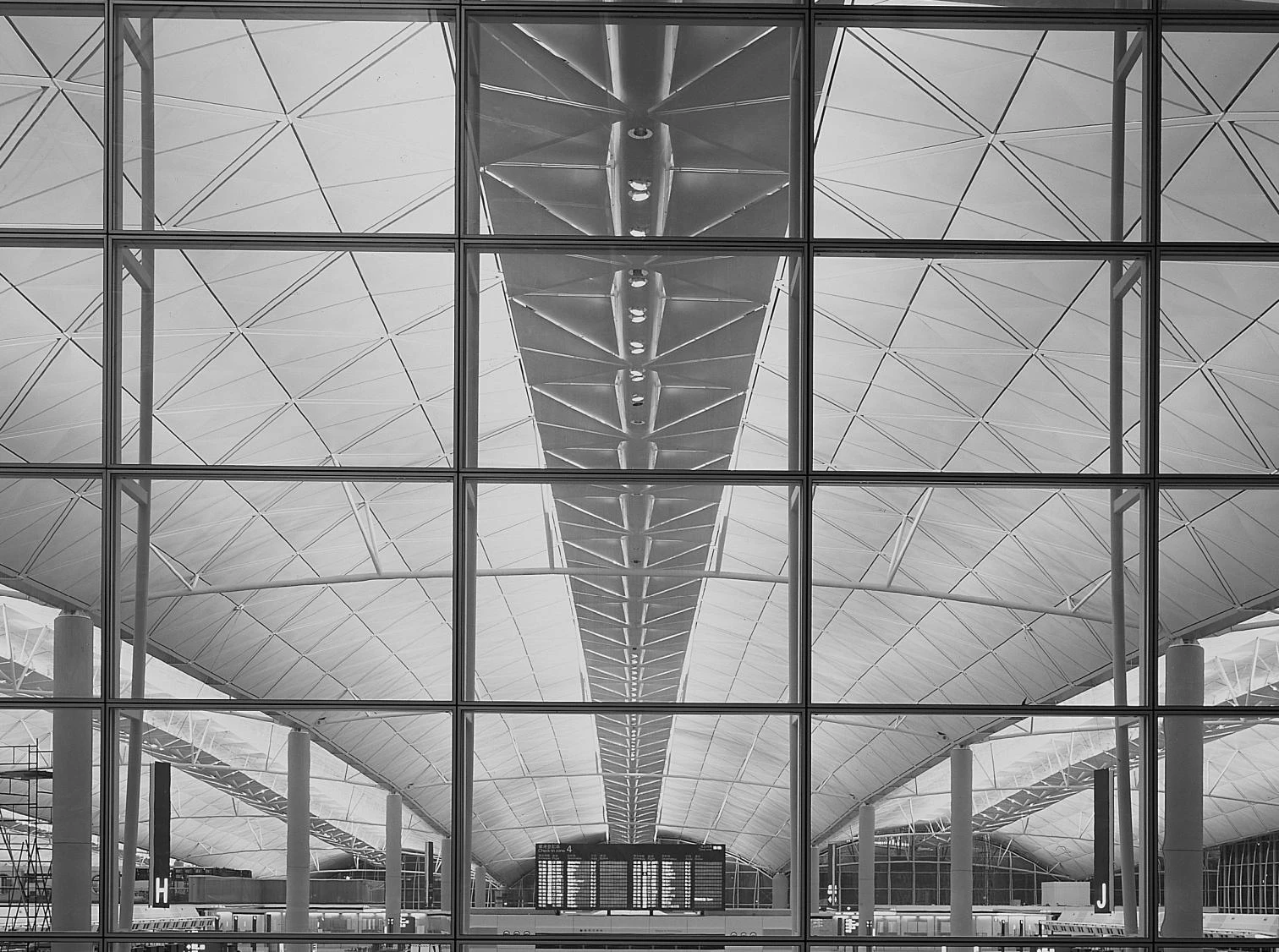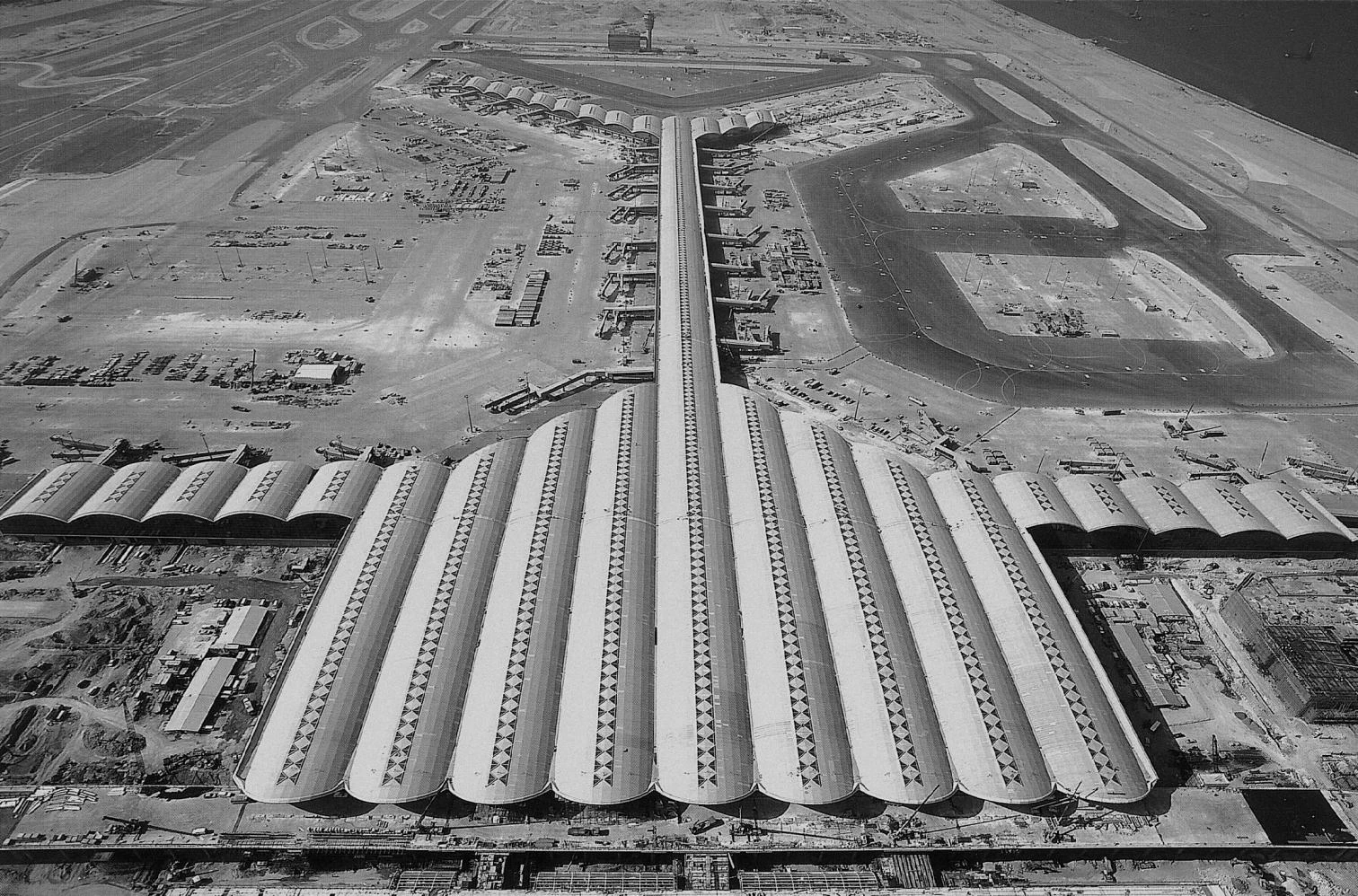 It is the largest work of the century, and could also be said to be the lightest. The international airport of Hong Kong at Chek Lap Kok is a titanic construction. Summed up in figures, it produces in us the same sense of unease that certain astronomic magnitudes do, unable as we are to visualize their size and losing our grasp of scale amid dizzying jungles of repeated zeros. Such colossal dimensions provoke a paradoxical mix of anxiety and indifference. The over 500,000 square meters of the terminal designed by Norman Foster are the finale of an airport project that has cost the city US$155,000 million. On a man-made island, 18 hectares of vaults cover the world’s largest terminal, with an underground luggage area that could take in five jumbo jets and a connection tunnel as wide as a highway, thanks to an operation that has involved the simultaneous activity of 21,000 operators, 230 consultants and as many as 50 draftsmen who have produced more than 2,000 plans on just the structure, not to mention 370,000 cubic meters of concrete, 67,000 tons of steel rods and the largest glass, stone and conveyor belt contracts ever signed.
