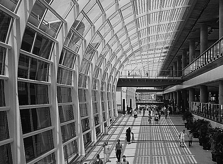 Hong Kong Airport is the largest construction of the century, but it transmits an image of lightness, which is helped by the uniform direction of the slender, interminable vaults of the roof.