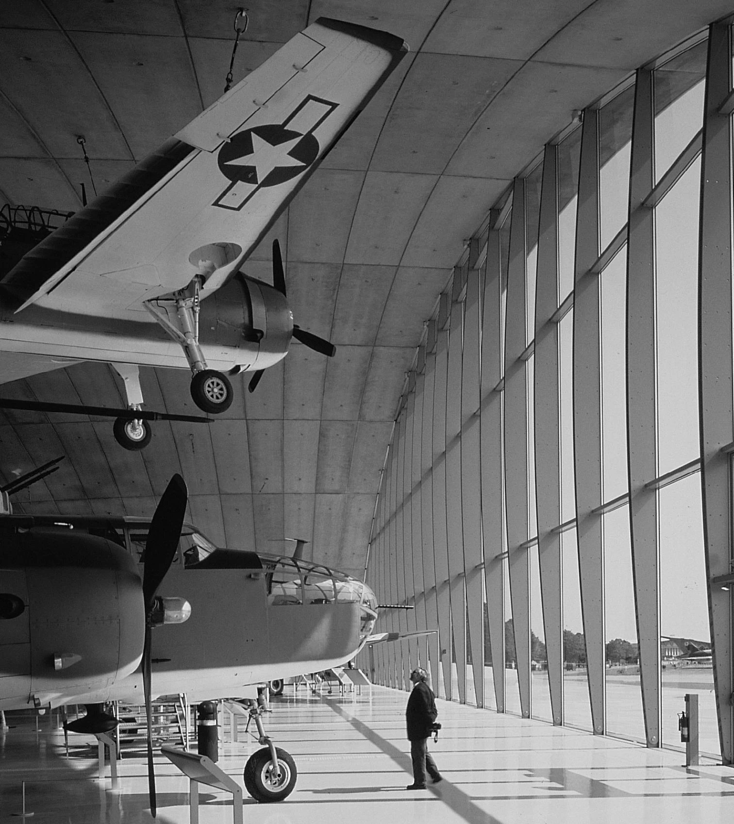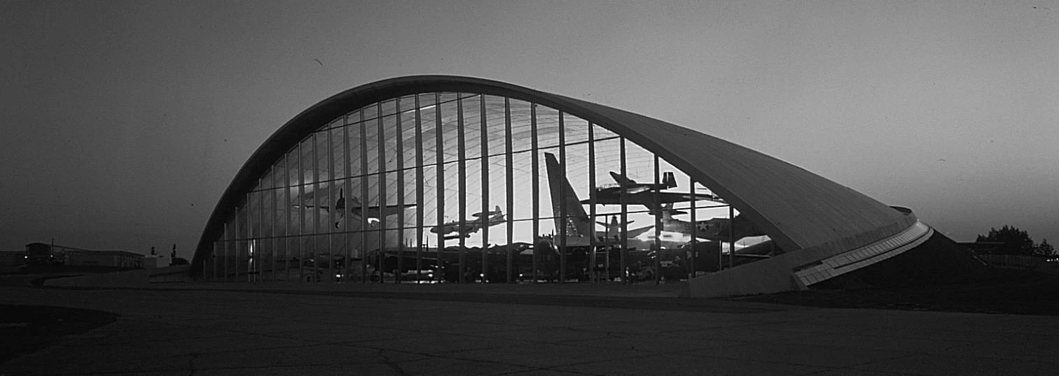 Norman Foster has combined his two passions, architecture and aviation, in the American Air Museum at Duxford, an elegantly shaped hangar built as a huge light concrete shell.