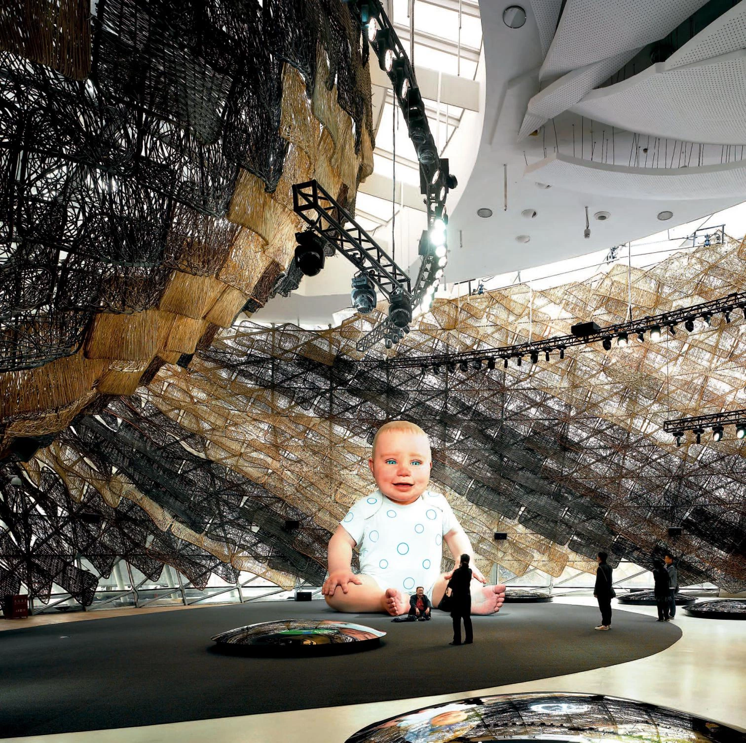 The Chinese pavilion in the Expo rose over the rest of them with its titanic tribute to traditional construction techniques; the Spanish one, wrapped with wicker, had a giant baby-doll as symbol and tourist attraction.