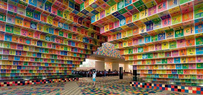 Two of the most striking pavilions of the Expo were those of Korea and Denmark (above), and the most intriguing happened to be the British one, a ‘cathedral of seeds’ built with translucent poles resembling needles (below).