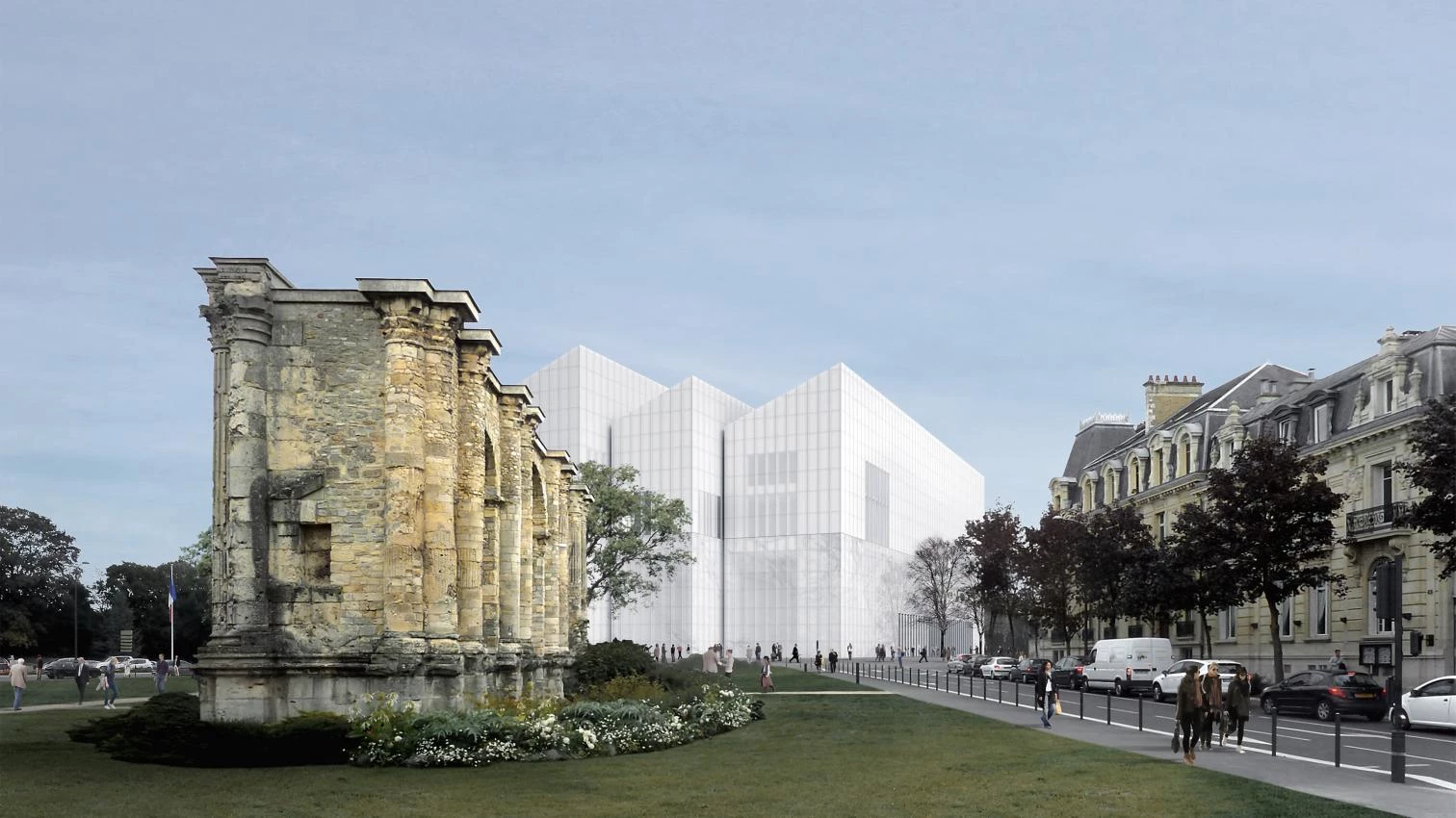 Tres volúmenes con cubiertas inclinadas y fachadas traslúcidas de mármol y cerámica dan forma a la propuesta de David Chipperfield para construir el nuevo Museo de Bellas Artes de Reims, con vistas a la majestuosa catedral gótica de la ciudad francesa. El proyecto del británico se ha impuesto a los de los otros tres finalistas, el japonés Kengo Kuma y los franceses X-TU y Dominique Perrault. Con esta obra, que resguardará un yacimiento arqueológico medieval, y en la que la luz natural jugará un papel relevante, Chipperfield continúa su trabajo con la materia del tiempo, cuyo ejemplo mayor es su premiada reahabilitación del Neues Museum de Berlín.