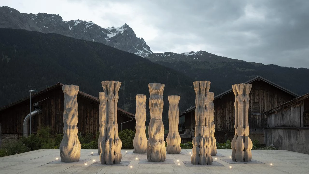 In collaboration with the Origen Festival in Riom, Switzerland the installation Concrete Choreography consists of nine, individually designed, 2.7m tall columns. Each column is concrete 3D printed at full height in 2.5 hours with the process developed at ETH Zurich, with the support of NCCR DFAB... [+]