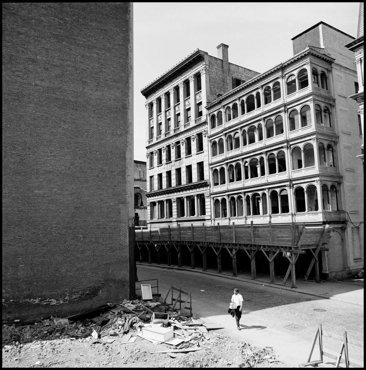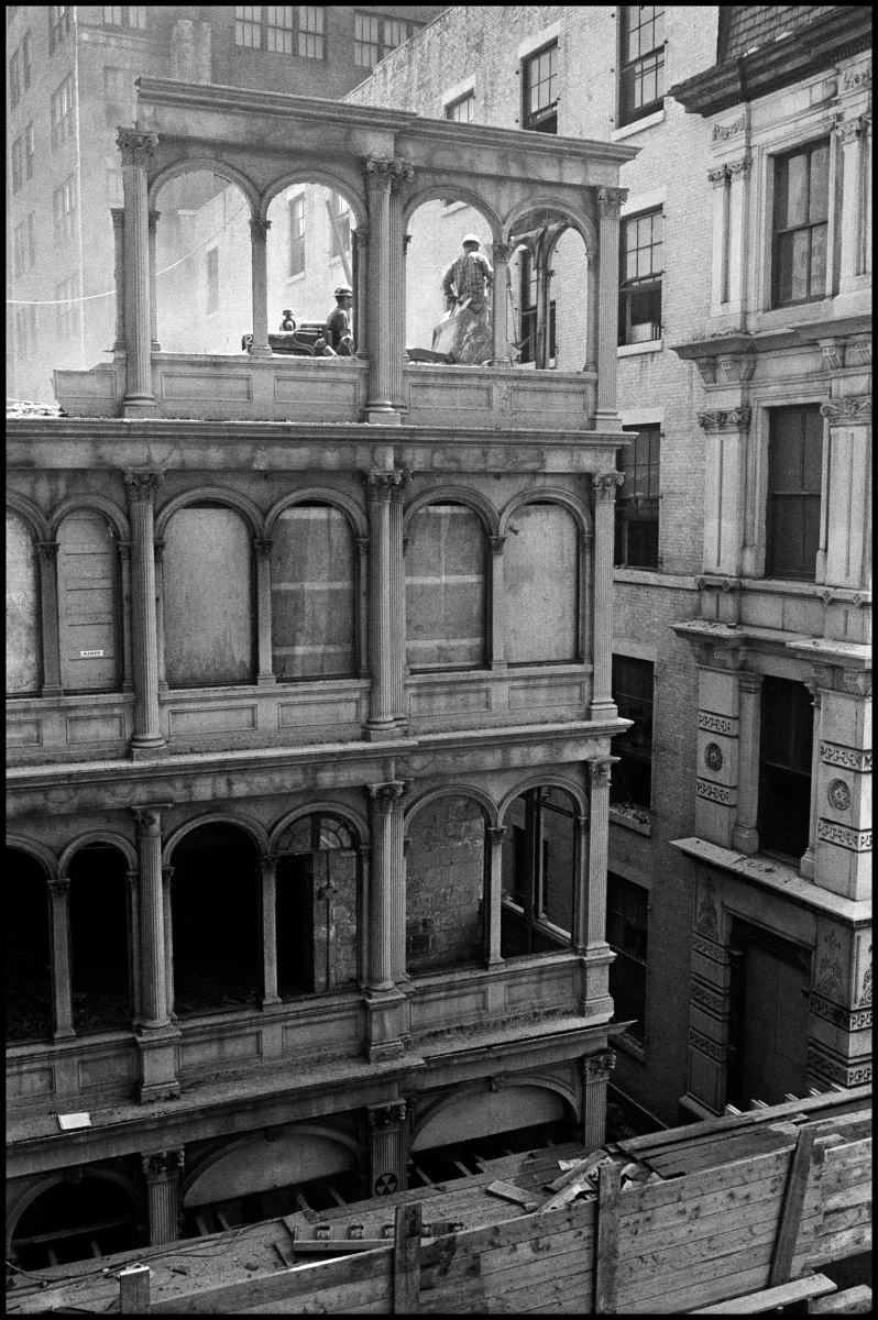 Lyon moved to New York in 1967, after spending two years following around the Chicago Outlaws motorcycle gang, which resulted in The Bikeriders, the series that made him one of the most influential photographers in the United States. Settling in his new home, Lyon found the streets of Lower Manhattan being demolished, and set out to capture with his camera the transformation of one of New York City’s oldest neighborhoods. In his own words, “the entire project is sad, except for the demolition men and their work,” for whom he felt deep respect. So it was that he documented the wrecking of 24 hectares of buildings in the city’s historic center, mostly 19th-century constructions, to make room, among other things, for the new World Trade Center.