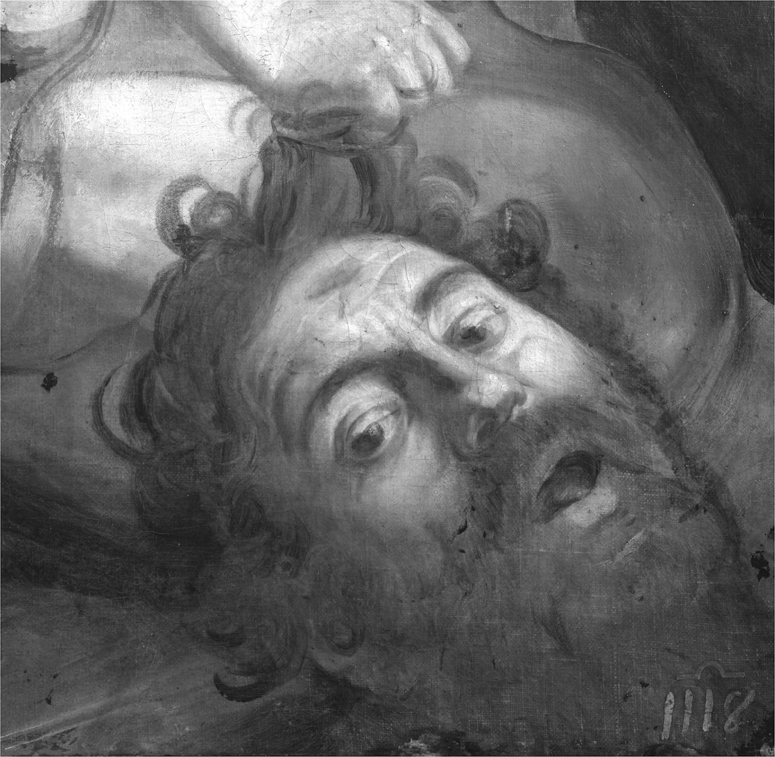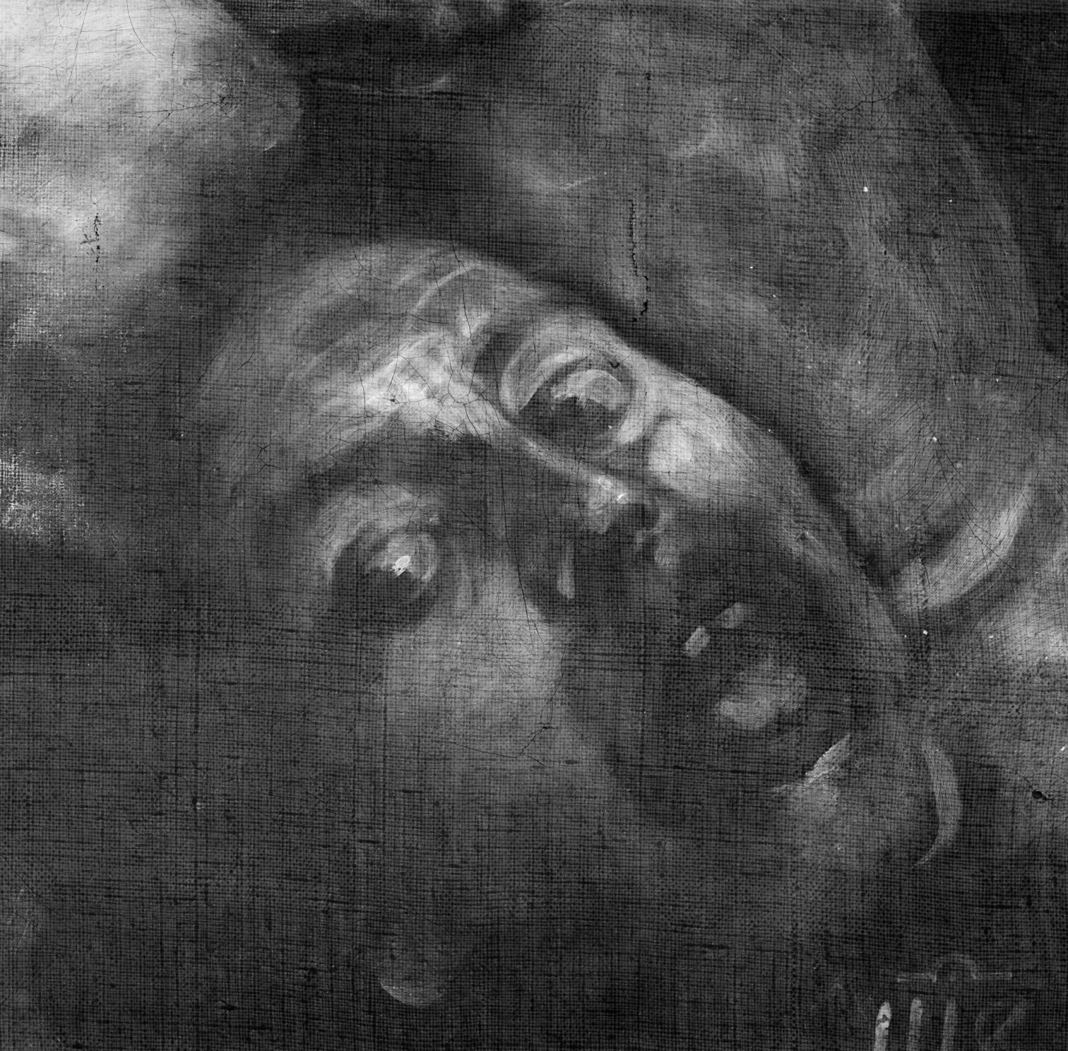 Reflectografía con el detalle de la cabeza de Goliat del David vencedor de Goliat de Caravaggio. / Reflectography of Goliath’s head of the David with the Head of Goliath by Caravaggio