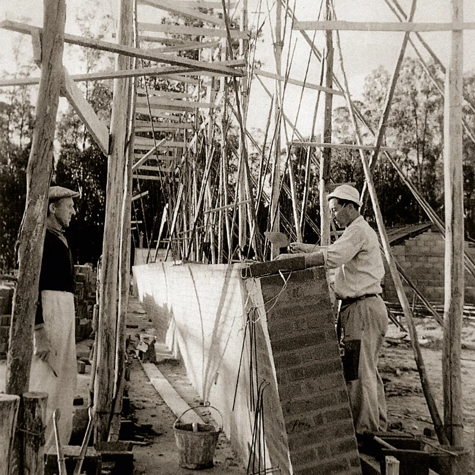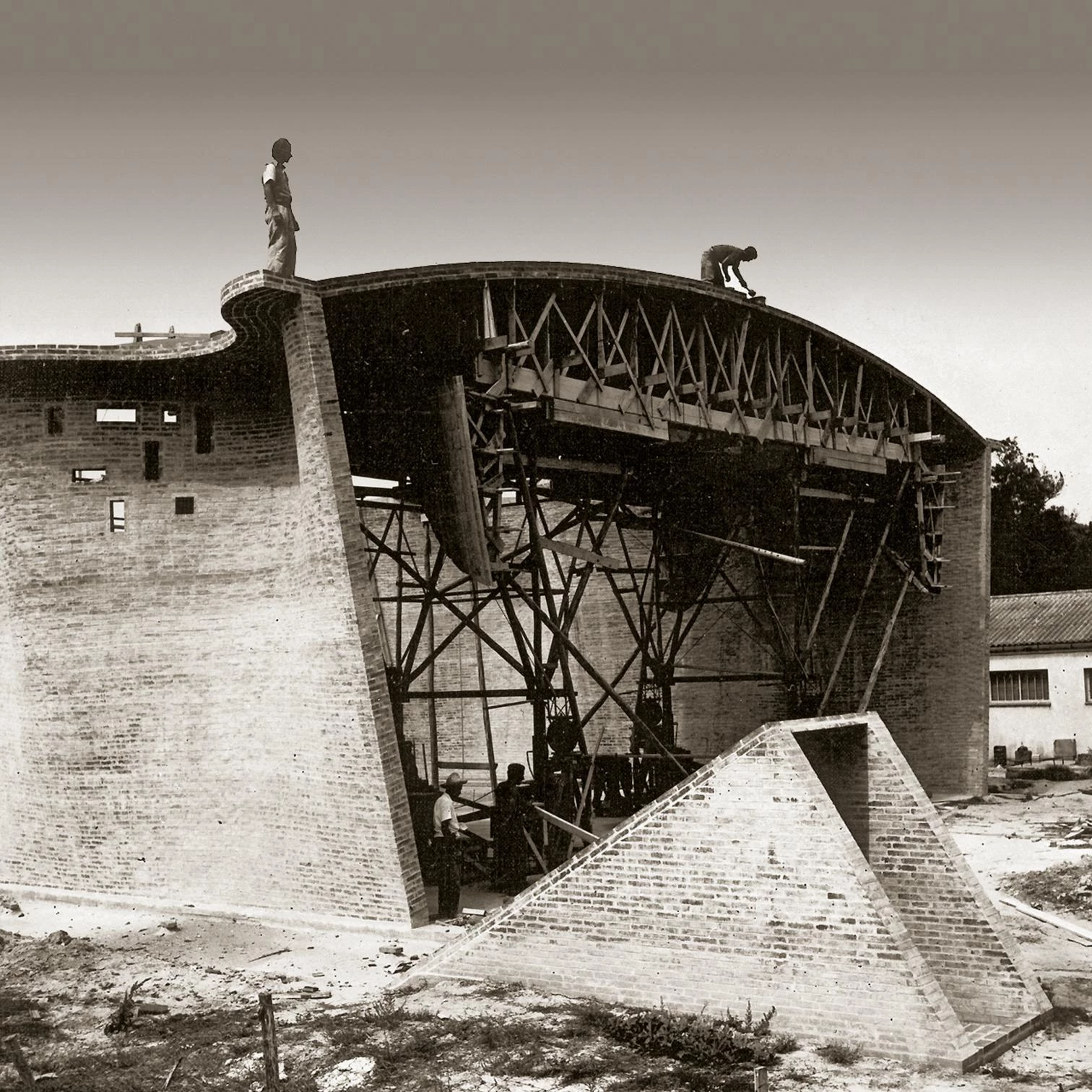 Building vaults was not part of local popular tradition, but artisanal use of brick was, and Dieste knew to reconcile it with industrial serial production. His vaults were economical because the artisanal process of positioning the molds, then placing the ceramic pieces over them, then putting wires in the joints, and then pouring the mortar could be done by workers of little skill. At this point, his creations were comparable with Félix Candela’s in Mexico, where the precision and slenderness of forms struck a contrast with the low technology of a kind of execution that was only feasible in an economic context of cheap labor.