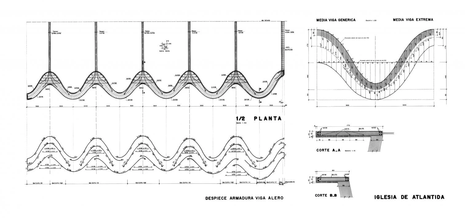 Such mysticism enabled him to link his interest in the artisanal values of popular art to his nature as an inventor of construction systems. His inventions were responses to mysterious intuitions that he himself described in the ecstatic terms of an enlightenment. Mario Sasson, the engineer in charge of structural calculation and construction management in Atlántida, confirmed that Dieste’s vaults were the result of lucid material-related intuitions that were subsequently verified through calculations. A first intuition was a fruit of collaboration with Antonio Bonet. Called in to execute some vaults of reinforced concrete for the Berlingieri House in 1947, Dieste criticized the irrationality of using that material and proposed a solution of sheets of brick.