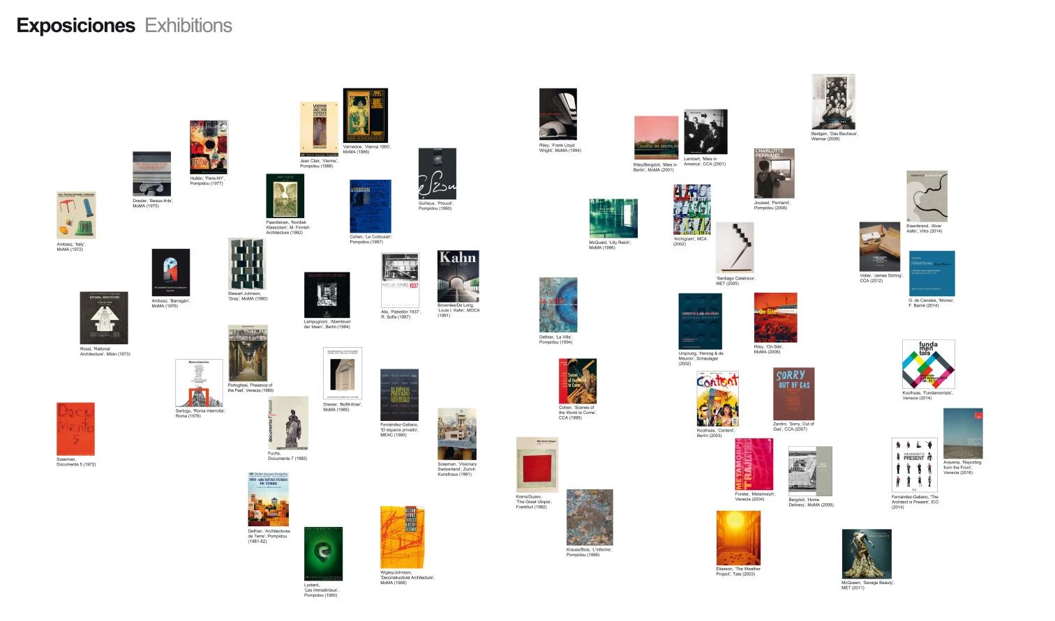 Here we have tried to come up with certain geographic balance, and the fifty exhibitions selected are spread out among twenty or so institutions and cities, but the fact is that two of them – the MoMA in New York and the Pompidou in Paris – have an inevitably dominant role, followed at a distance by the CCA in Montreal and the Venice Biennale, although in the latter case the size of the exhibitions and their impact surely compensate for the inclusion in this list of only four editions. The resulting map has an undue concentration in Europe and the US East Coast, but only because our experience is limited, and our knowledge of more remote geographies insufficient. Just like the books were dated by first printing in their original languages, these exhibitions are dated by the openings in their first venues, even though many have subsequently traveled to numerous other places, and in doing so perhaps alleviated the excessive concentration in benchmark institutions.