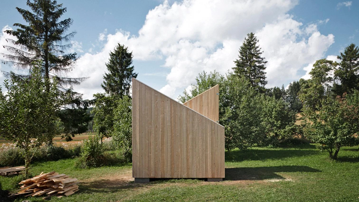 Anna y Eugeni Bach no pudieron decir ‘no’ a sus hijos cuando estos les pidieron una casa. Y se la construyeron, como si fuesen unos clientes muy especiales, en la granja que sus abuelos tienen en Finlandia. Geométricamente, la casita surge de una sección extruida longitudinalmente para formar dos módulos iguales aunque orientados en direcciones opuestas. Uno de estos módulos presenta doble altura —pero una doble altura a la escala de los niños—, lo que permite que un adulto pueda entrar en la casa sin tener que agacharse. El otro módulo tiene dos niveles, conectados por una sencilla escalera que hace posible un juego espacial más complejo en el interior. Desde fuera, la casita se percibe como un objeto autónomo, casi sin referencias de escala, mientras que dentro se convierte en la reducción esencial de lo que los niños entienden por una casa: un espacio mayor que podría ser el salón; un espacio de menor altura donde podrían ir la cocina y el comedor, y un altillo, situado en la parte de arriba, donde podrían ubicarse las habitaciones. Es decir: una casa completa, abierta a los juegos infantiles, y condensada en tan sólo 13,5 metros cuadrados.