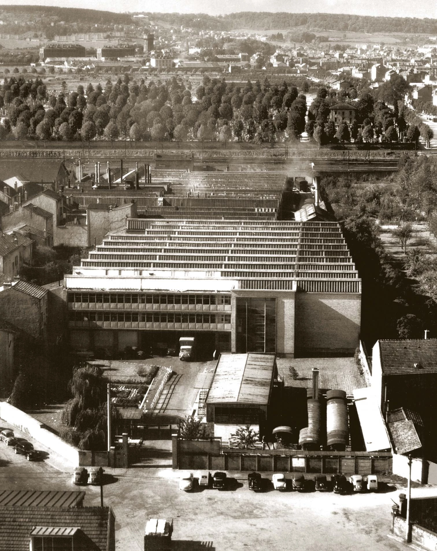 In 1947, Ateliers Jean Prouvé abandoned its outgrown workshops on Rue des Jardiniers, in the town center of Nancy, for larger space in an industrial area on the northern edges of the city. The need for expansion came hand in hand with a desire to take part in the national postwar reconstruction effort through the incorporation of a metal prefabrication enterprise.