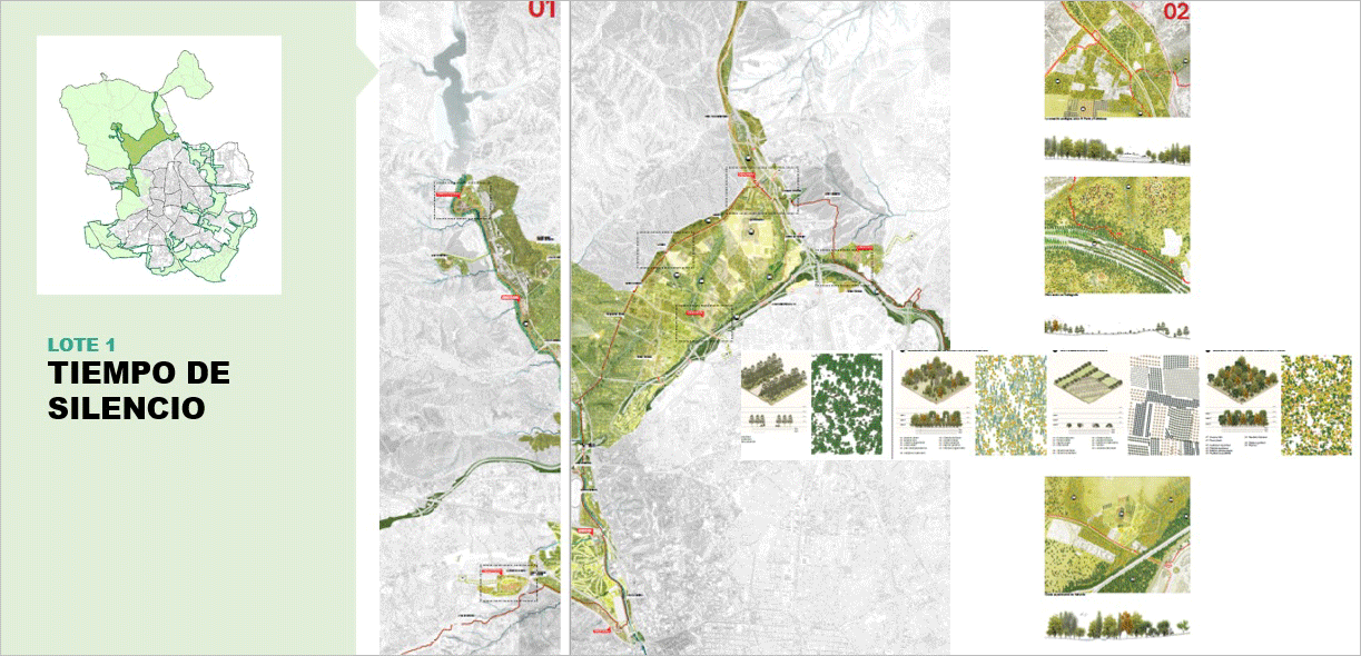 the recent competition for ideas: Volterra Ecosystems and LOLA Landscape will work in the vicinity of El Pardo Mountain; Climent-Climent-Navascués-ARZV in the north-east arc; Uxama, Gestión Integral del Suelo, and Eslava y Tejada Arquitectos in the southeast ring; Alday Jover Arquitectos in the low bed of the Manzanares River; and Rubio Arquitectura in the southeast sector.