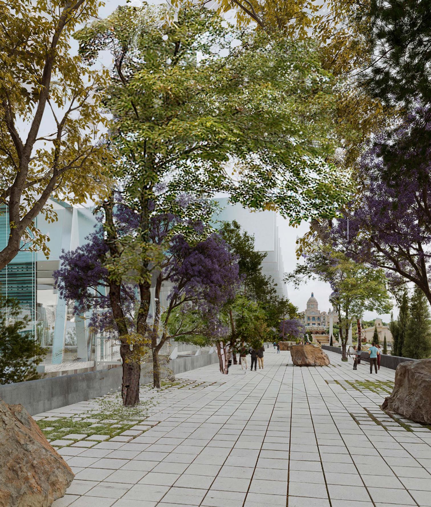 The ‘Umbracle’ scheme drawn up by Forgas Arquitectes, Archambac (Arquitectura Sideral), and Álvaro Fernández García has been selected for materialization as the new Palau de Congressos de Barcelona within the present Palau Alfons XIII. It respects the original structure of the hall designed by Josep Puig i Cadalfach, creating a series of spaces that includes a new entrance from Plaça de Carles Büigas, through a foyer and a 6,670-square-meter courtyard-garden. There will also be a 3,132-square-meter exhibition hall, an auditorium seating 2,025 people, and several multipurpose and meeting rooms.