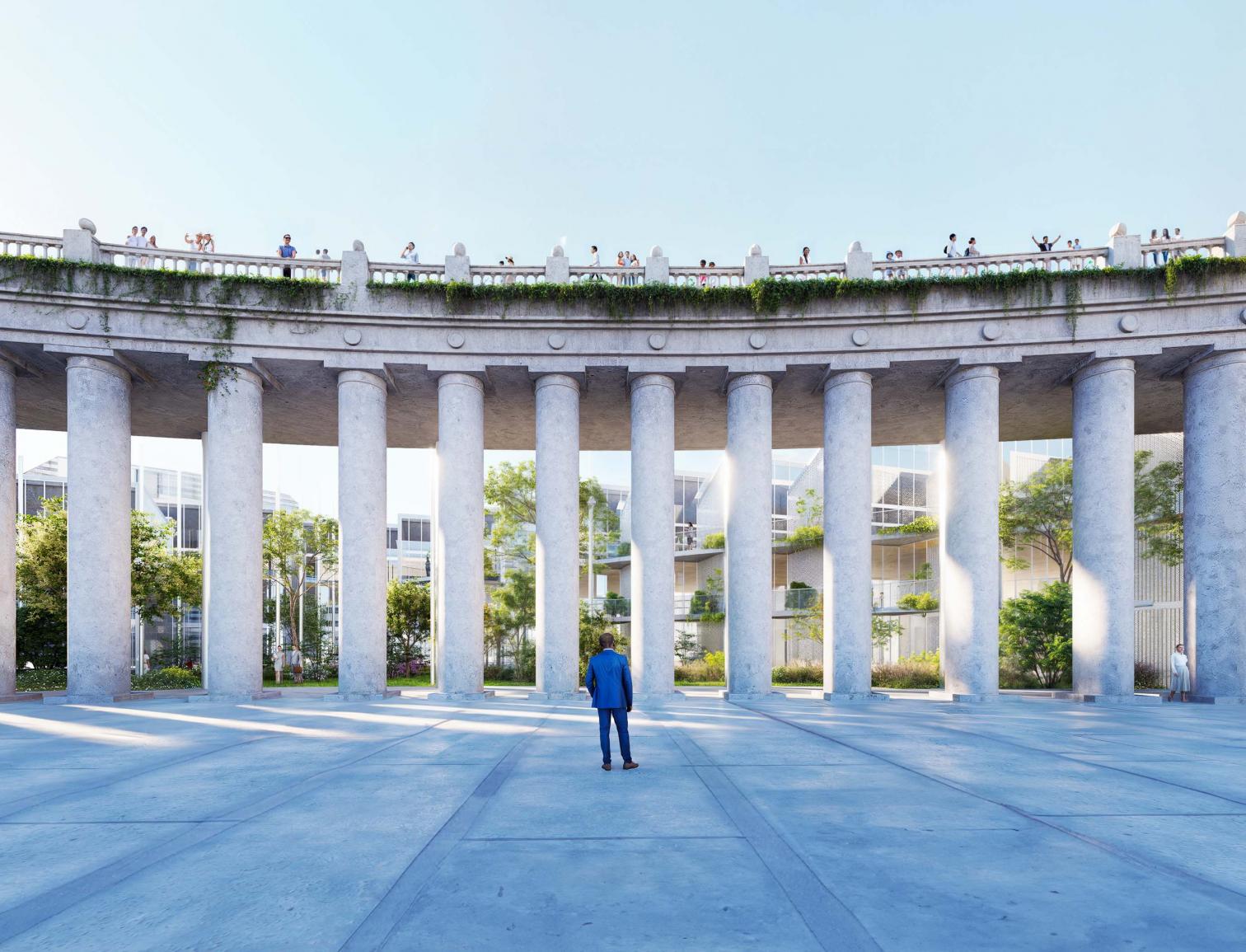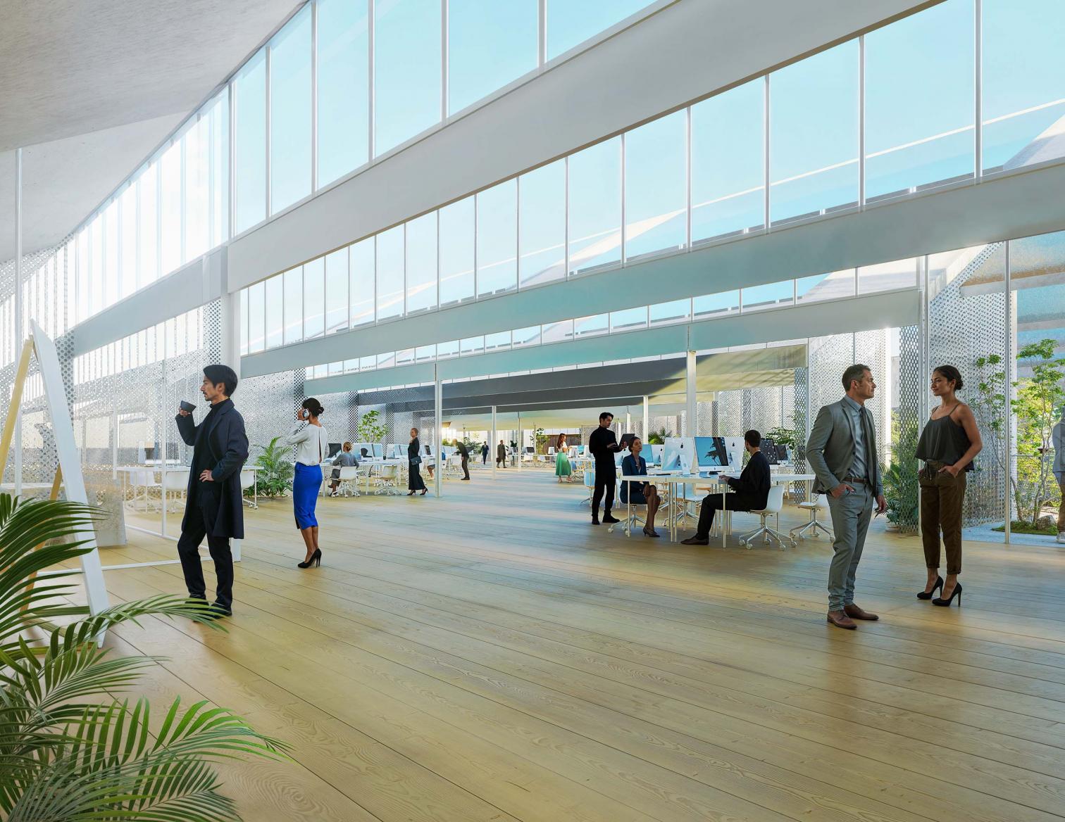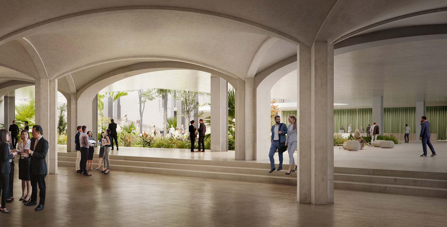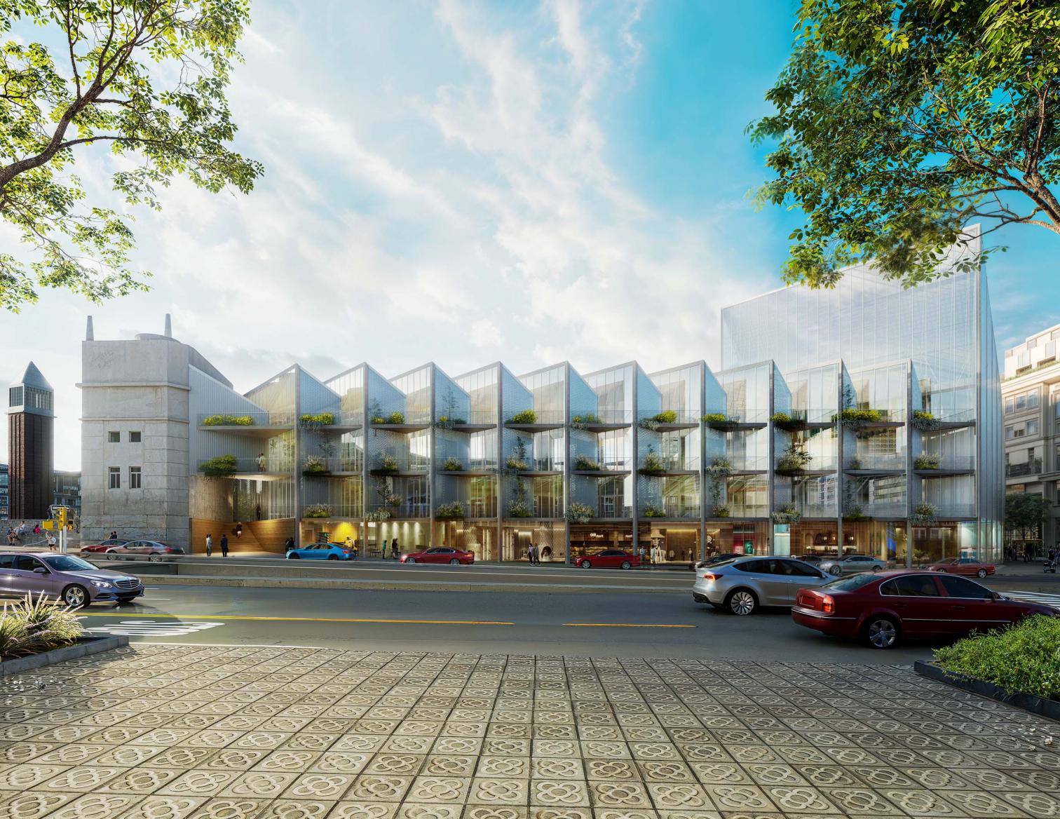 Finally, for ‘L’Avantsala de la Fira’ Bjarke Ingels Group and MIAS Arquitectura have won the third lot, focused on renovating the Palau del Vestit to harbor the Fira Barcelona Innovation Hub. The trade institution’s future permanent innovation center, to rise three floors, will adopt a Z shape surrounded by landscaped spaces open to the public. The current facade facing the Plaça d’Espanya, with its suite of columns, will become an entryway into the gardens.