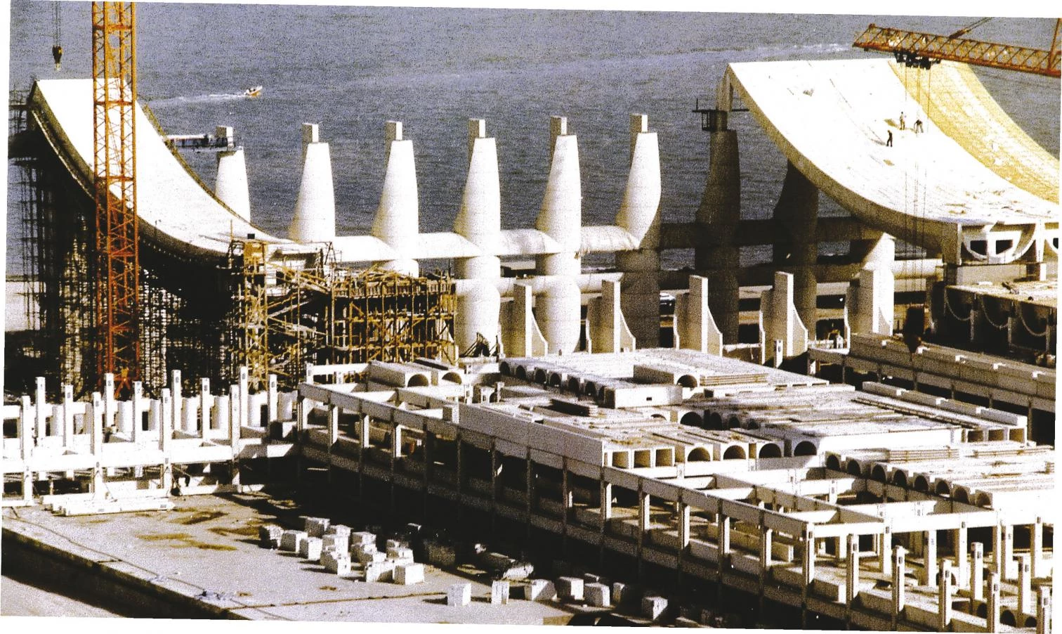 Behind was the vernacular topography of the Kingo Houses, with the landscaping intelligence of their courtyards arranged in sequences and the tac-tile sensibility of their brick masonry, designed shortly before the Opera House competition that in 1957 gave Utzon the equivocal prize of fame, and extended soon after in another model residential development, the Fredensborg complex. Behind, too, was the unique project of a museum for the artist Asger Jorn, a cluster of jars or buried coconuts tan-gled in ramps that joins the Einsteinturm and the New York Guggenheim to Kiesler and Ronchamp. Behind was his first Mallorca house, a severe and archaic work of stone, geometry and light where he would become a recluse in 1973. And behind was, finally, Kuwait’s National Assembly, a labyrinthian bazaar in penumbra with solemn arcades made of concrete canopies, echoing Chandigarh, whose monumental architrave prefabrication took ages to complete, only to be downed in the Gulf War and reconstructed with less fortune later.