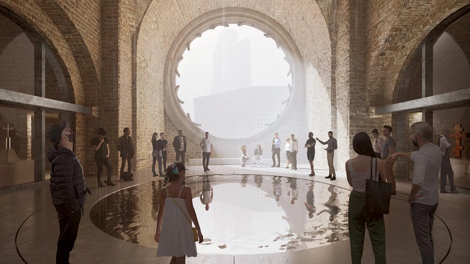 In the large-scale handbook of restoration that Berlin is, amid everything that in the period following World War II was reconstructed exactly like before and everything that on the other hand was demolished to make room for modern structures, a building stands out – apart of course from Chipperfield’s Neues Museum – that is neither-nor: the Kaiser Wilhelm Memorial Church. This is an edifice in which Egon Eierman combined some bright prisms of concrete and glass, intended for liturgical rites, with the remains of the devastated neo-Romanesque temple, preserved as a remembrance of the impact of air raids. The Dublin-based practice Heneghan Peng, in collaboration with the museum exhibition design expert Ralph Appelbaum, will be in charge of improving visitors’ experience of the ruins with a sensitive scheme that enlarges the space two-fold, and includes a meditation spot with a circular pool of water that echoes the rose window blown up by shells.[+]