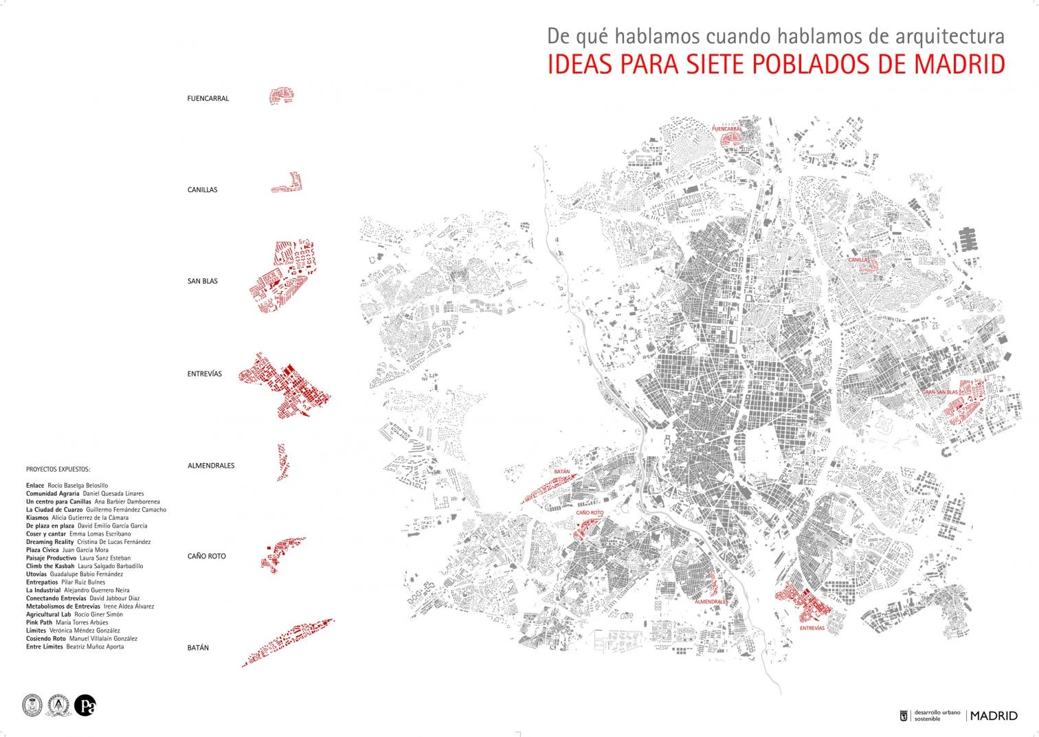 The Madrid ‘poblados’ were developments designed sixty years ago by young architects who took up the task of building thousands of dwellings to deal with the rush of migration to the city. With that same daring spirit, the new architects of now have drawn up twenty-one projects for regenerating those settlements, working out problems of different scales that range from mobility to ambitious construction proposals. The regeneration schemes increase density and programmatic variety, and features new housing typologies and facilities that will potentially make the city more polycentric and sustainable.