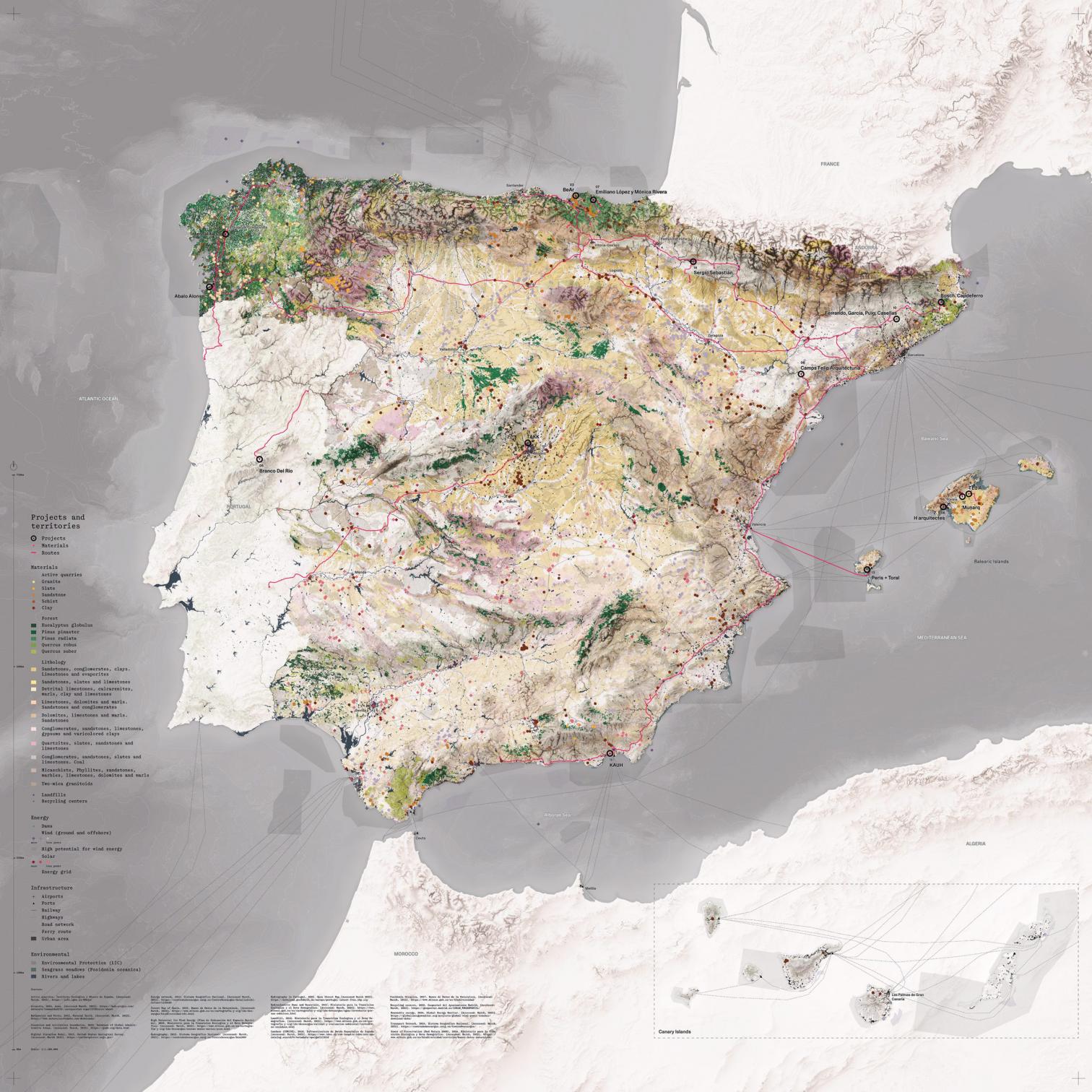 Another good thing about the pavilion is what it will leave behind: just a handful of Balearic seaweeds, the three Galician pines used as supports, and a map connecting major infrastructures and sources of materials to the projects on display and their authors. Hopefully these debates will soon lead to biennials devoid of externalities, and in equilibrium with the territories where they are held.