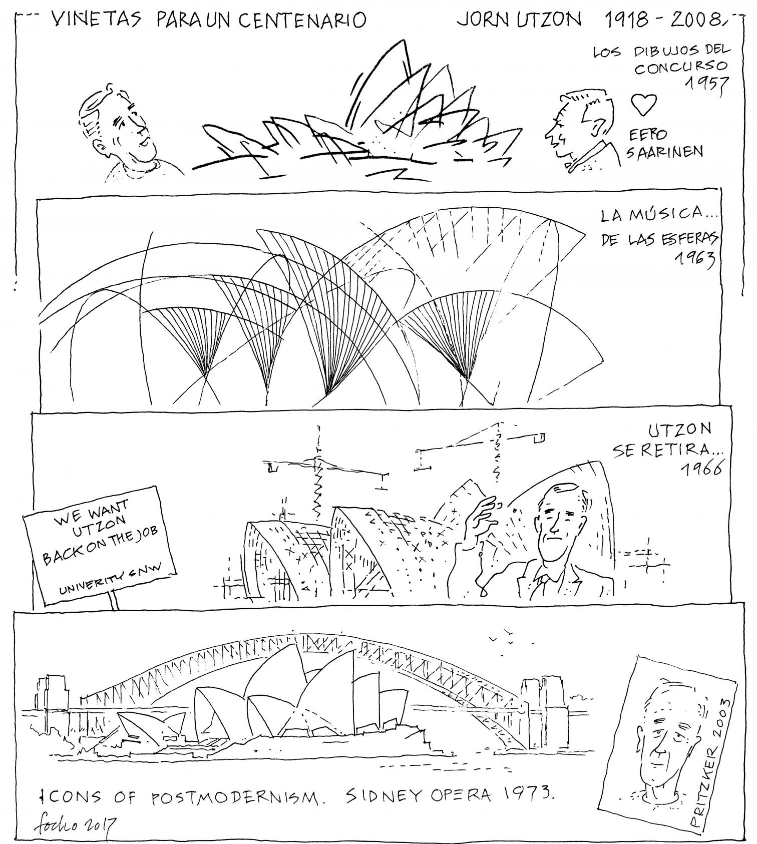 In 1957, at 38 years of age, a competition jury on which the Finnish Eero Saarinen sat chose Utzon’s proposal for the SOH, and for a decade the Dane was at the forefront of the construction of the light sails that would mark his career. In 1966, however, a change of government led to a series of disagreements between the architect and the authorities, who questioned his decision to extend the ‘music of the spheres’ to the building’s interior. Utzon gave up the project and left the country, never to return. Completed by others, the opera house was inaugurated in 1973 in the absence of its author. Hence, the Pritzer Prize that was bestowed on him three decades later was an act of justice: the architectural discipline’s reconciliation with the Australian emblem.