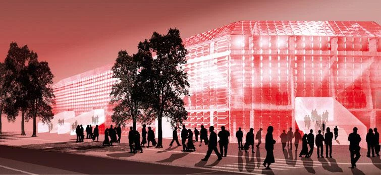 Beyond these excessive echoes, Herzog & de Meuron share with the author of the Critique of Cynical Reason the conviction that “life is a question of form,” an inclination to think of the human being from the viewpoint of spatial experience, and the intuition that the fading of the idea of womb and shelter, brought on by the loss of the protective cosmic shell of old models of the universe, calls for a new way of designing and thinking that reconcile the intimate with the global. Certainly St. Jakob Park is a cosmetic job of a work in progress where bulging skylights resembling those of the Prada store in Tokyo are used to fabricate a soft and translucent facade that by night theatrically reveals the violent red of the grandstand’s extrados; but this oriental lamp is also a deep red tribute to a sport institution that contributes to the emotional identity and informal sociability of the European city that constitutes the personal sphere of its authors. The Allianz Arena is an instantaneous icon, a fortunate idea of pneumatic imagery and changing color that enabled them to carry the day in the competition, but this luminous symbol of globalization at the service of a finance multinational and a mediatic sport is also a recipient of singular emotions and a spherical vessel of collective interaction. The Olympic Stadium of Beijing, finally, is a brilliant aesthetic and structural challenge whose artistic and technical daring was bound to impress the jury, reaping for the Swiss partners the largest and perhaps most decisive commission of their career; but this memorable tangle of steel hovering over grass and grandstand is also a nest offering ritual shelter, in strange intimacy, to the public sphere.