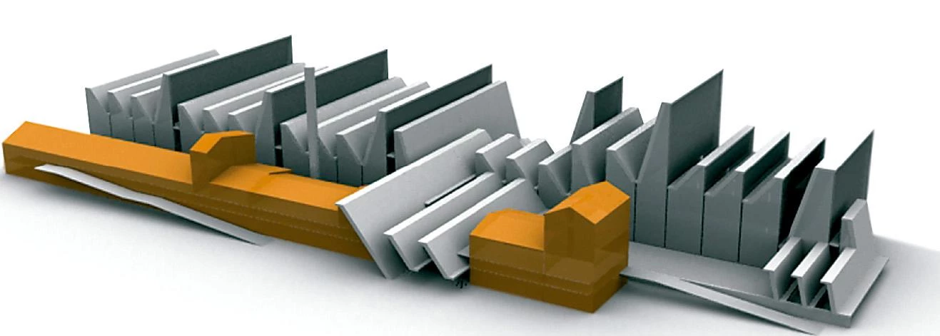 Although the grand prize, after an articulate, eloquent presentation, went to the author of the Grand Bibliothèque of Paris and the Caja Mágica of Madrid, the other awards were given to Spanish studios. The first runner-up was Francisco Mangado, recent winner of the competition for the Congress Center of Palma de Mallorca, who in this case defended a sober and pragmatic proposal, a project based on one hand on adapting the factory’s brick-and-steel sheds to trade fair uses, and on the other hand on a series of convention rooms of new construction that are livened up by footbridges evoking the random order of industrial complexes: a different interpretation of a familiar program for the Navarrese, who in the wake of the Baluarte of Pamplona has the convention centers of Ávila and Palencia under construction, the latter also in an old factory, and who, incidentally, is competing with Perrault, Chipperfield, and three engineering firms for the construction of the nearby station that will bring the bullet train into León. The third prize was shared by two Madrid partnerships: on one hand, Fuensanta Nieto & Enrique Sobejano – authors of the Congress Center of Mérida and winners, just two weeks earlier, of the Convention Center that will be inside the Expo 2008 premises in Zaragoza –, who presented a sculpturally forceful project with a serrated profile that extrudes to form a volume crowned by rows of giant skylights; on the other, Iñaki Ábalos & Juan Herreros – their work currently on display in Madrid–, who formulated a rigorous, rough proposal based on the expansive nature of trade fair programs, and gradually occupied the whole site with a checkerboard of roofs inspired by those of their own sewage treatment plants.