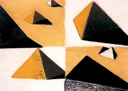 The structures of Fuller inspired the tetrahedral coffering of the floor slabs at the Yale University Art Gallery ; and a repertoire of elementary geometry unfolds in the project for the center of Philadelphia (right).