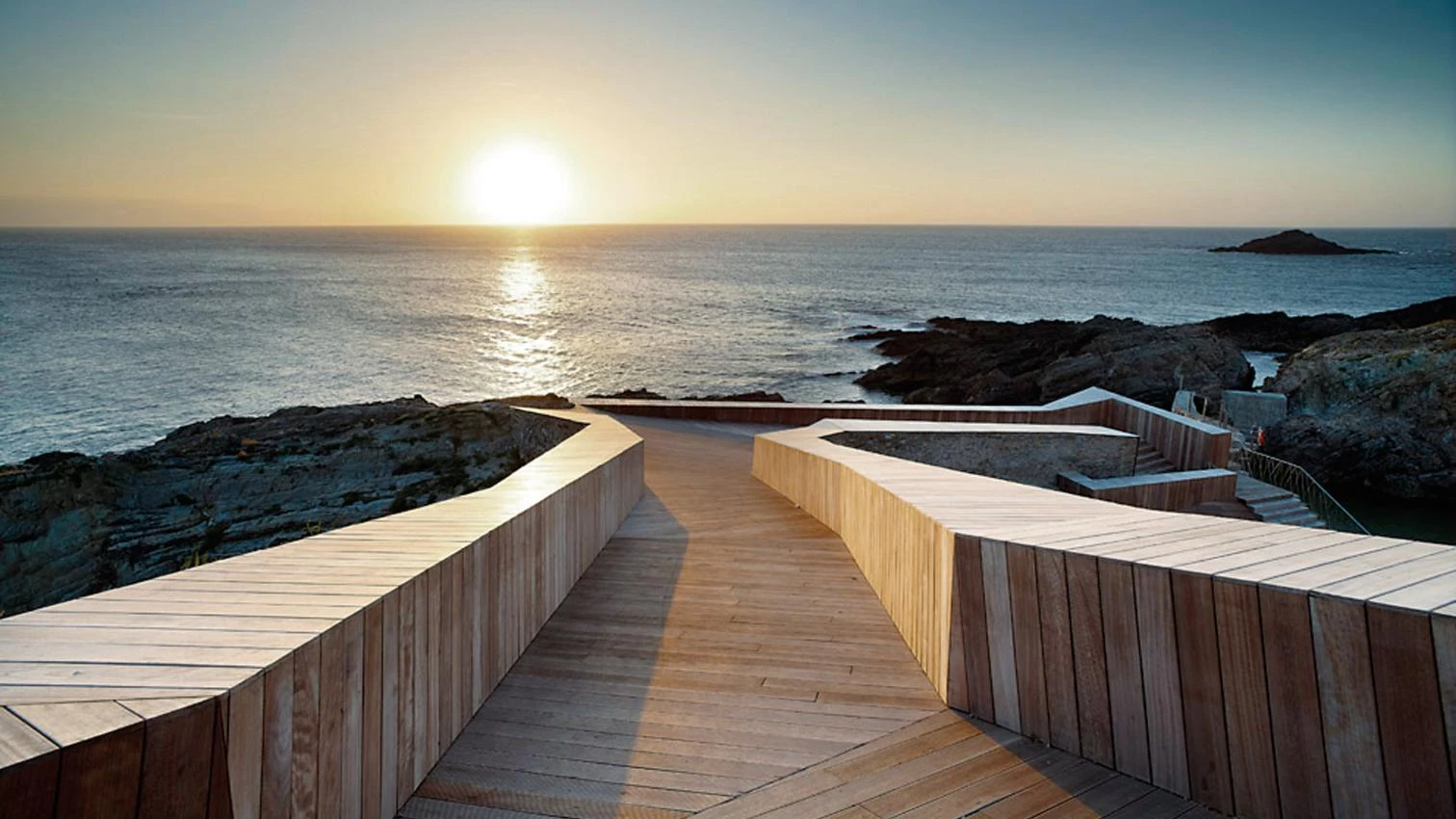 Una antigua cetaria —vivero de producción de crustáceos comunicado con el mar— en el pueblecito asturiano de Tapia de Casariego ha sido reconvertida en piscina de agua salada, según proyecto del arquitecto Jovino Martínez Sierra. La cetaria se encontraba abandonada desde hacía tiempo, pero conservaba el foso, las plataformas de las edificaciones y los muros de piedra del camino de acceso, que se han revestido de madera, incrustándose en el terreno; la senda desciende mediante rampas y escaleras hacia la zona de baños, estancia y solárium. La intervención altera mínimamente las vistas sobre el horizonte y crea una nueva topografía que interactúa con el entorno. El proyecto fue seleccionado en la II Bienal de Arquitectura, Arte y Paisaje de Canarias.