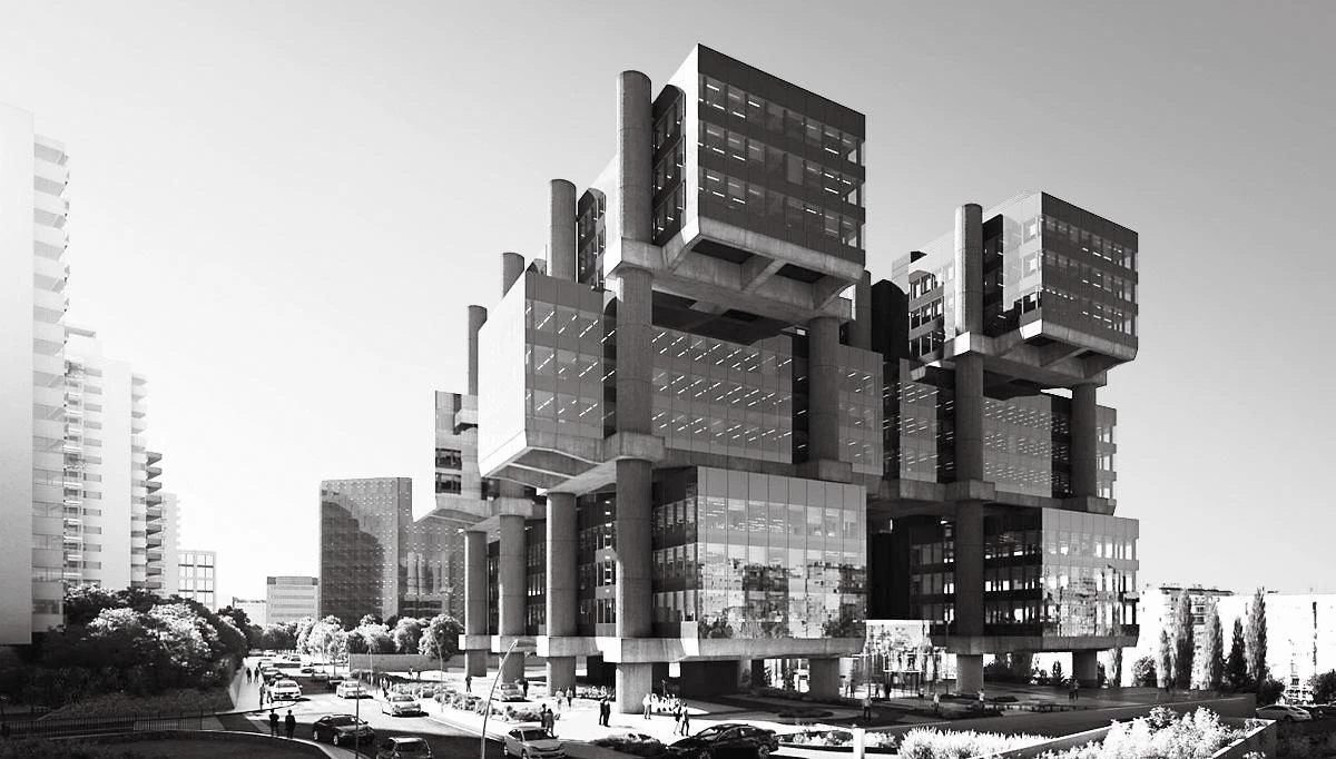 Andrault’s aesthetic could sometimes be very delicate; take the case of his school in Orleans. But he is most connected to constructions with glazed volumes and well executed facades, and here we sense the influence of Kenzo Tange and Paul Rudolph, as much in the brutalist expressivity of the buildings as in the legible rendering of elemental geometric figures.
