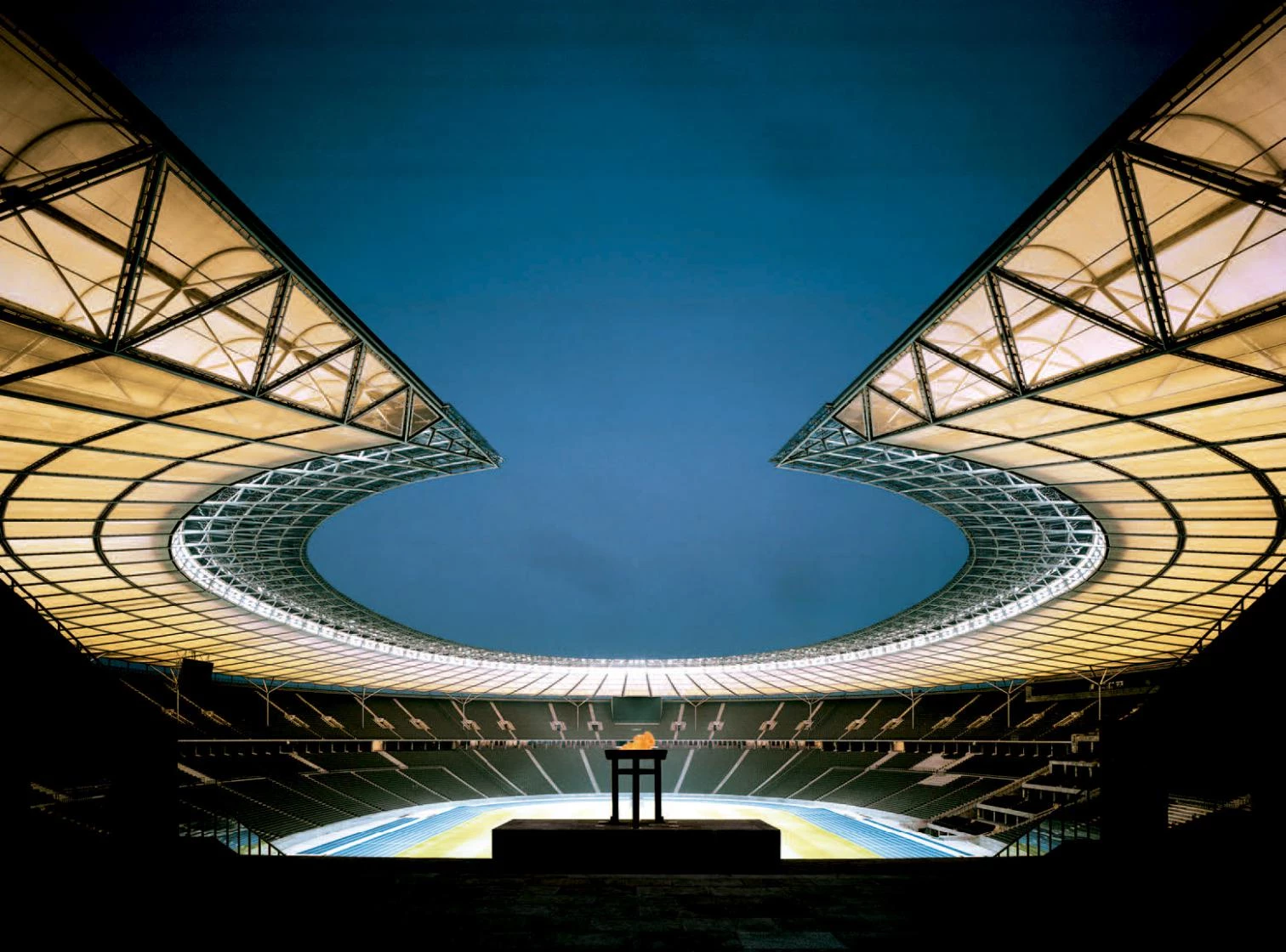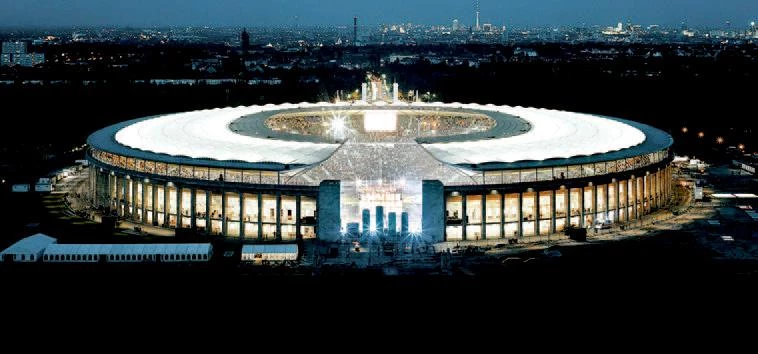 The stone peristyle of Berlin, for its part, barely altered by the new canopy, would seem to express the classicist sensibility of old Germany. But its subjection to the rhetorical monumentality of Hitler’s architecture, sacrificing functionality to the ceremonial axis that fractures the grandstands and the roof, makes its historicist traditionalism an anti-classical statement, one which otherwise refrains from questioning the theatrical urbanism of the Nazi period. This is perhaps the most contemporary attitude in a country that has replaced the embarrassment of guilt with a distracted acceptance, and which after the fall of the Berlin wall has occupied old Nazi buildings – from the headquarters of the Luftwaffe, now turned into the Finance Ministry, or the old Reichsbank, now housing Foreign Affairs –without the scruples or feelings of reticence that formerly plagued Germans when faced with the phantoms of their past. Only by considering this can we understand the naturalness with which they have remodeled the venue of the 1936 Olympics, the very place where Leni Riefenstahl filmed Olympia – the propaganda documentary that best presented Nazi ideals and aesthetics – and where Albert Speer put up the same cathedrals of light that had graced the Nuremberg party congress of 1934.
