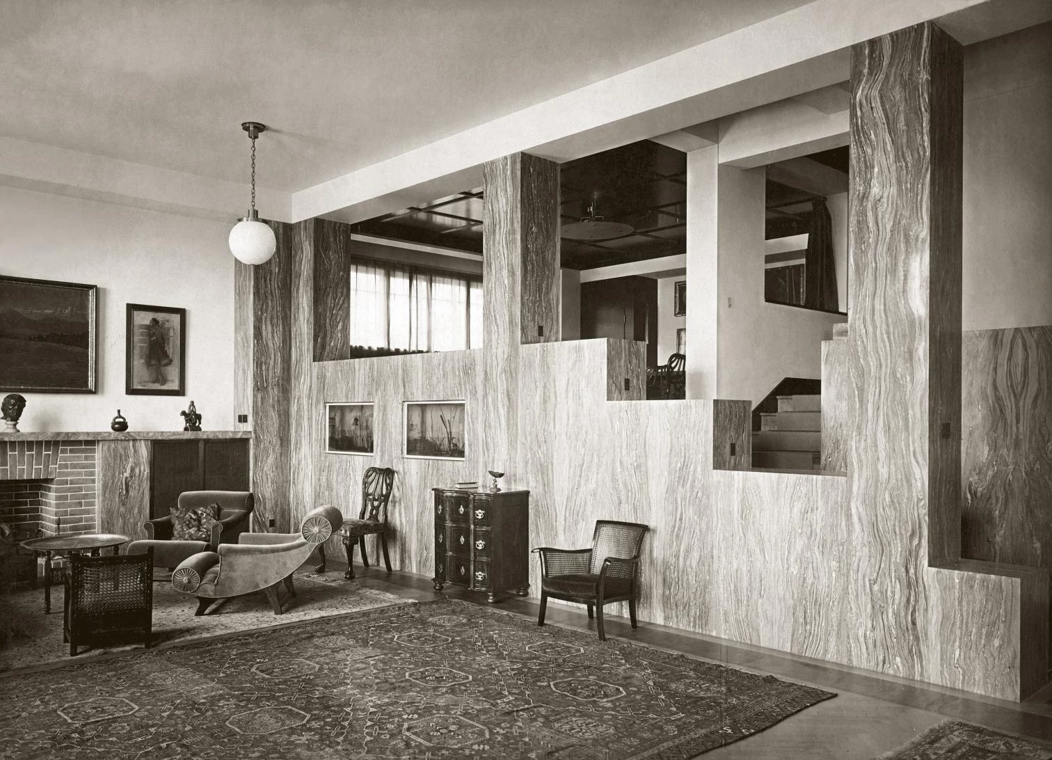 The interiors of Adolf Loos are conceived “in the space,” and this is exactly the meaning of what he called raumplan (floor plan of the room, literally). A space over which various rooms hover, each one with its own particular measurements and proportions, just like the boxes over the stalls in a theater, and so it is that we can speak of certain scenographic intentions of these spaces. Each thing, each activity, and the gestures and also the clothes we wear to do them fit into spaces of varying dimensions that arrange themselves up and down the stairs, without ever losing sight of the space around which they are laid out.