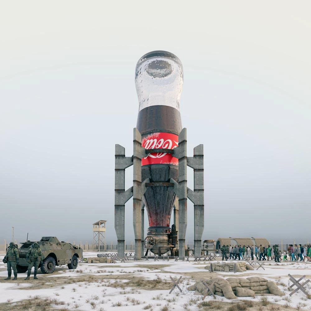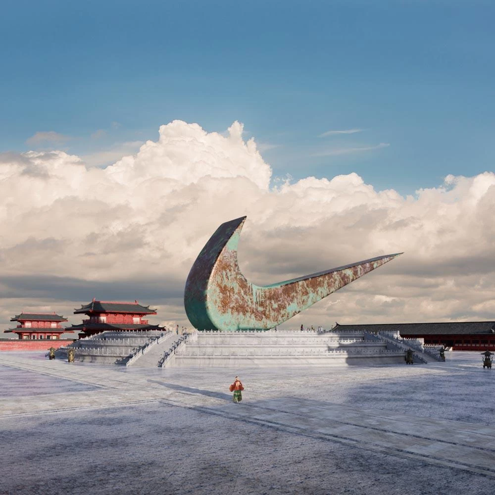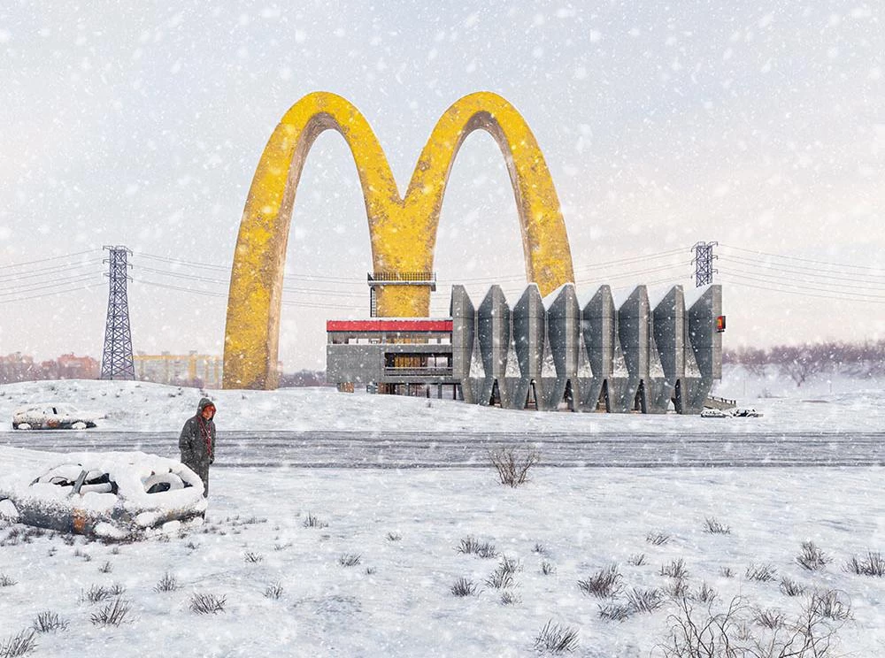 Born in China and based in New York City, the architect Quin Wu produces digital images where the logos of Western brands like McDonald’s, Coca-Cola, Nike, or Chanel are grafted on extreme natural environments in the East.