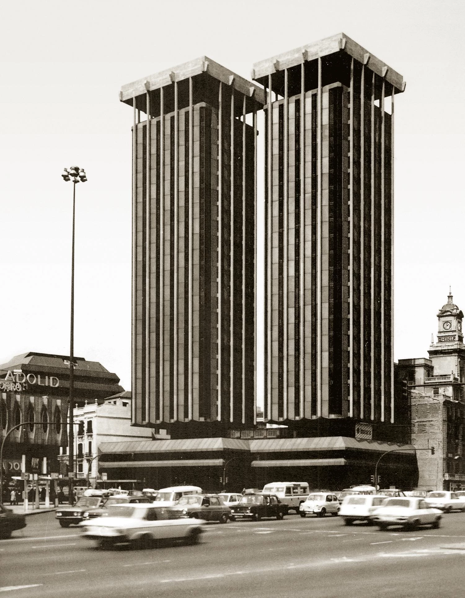 But Madrid was where Lamela raised his most important works, on a scale and with a visibility that surely made them part of the image of the city. Especially important was Hotel Meliá on Calle Princesa, a complex that included apartments and offices on land purchased from the House of Alba, adjacent to the Liria Palace grounds; the Galaxia ensemble, an experience in urban design on the site of an old perfume factory; the Torres de Colón, whose structure designed by the engineer Javier Manterola made the floor slabs hang from the top of the towers, making them a technical feat and a landmark in a highly visible place; and the Pirámide, again on the Castellana axis, where the requirement to set buildings back from the avenue gave rise to an iconic form.