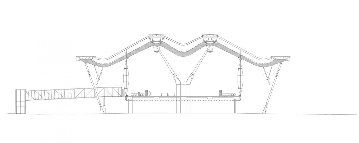The Spanish capital would also be the location of some of the firm’s largest and most symbolically significant commissions in the post-Franco years: Santiago Bernabéu Stadium, which Lamela – Real Madrid member number 59 – enlarged and renovated in two successive stages, starting in 1988, for club president Ramón Mendoza; and Barajas Airport, whose terminals he renovated and whose impressive T4 he built, beginning in 1998, with the British architect Richard Rogers, stunningly crowning the emblematic gate into the city with a colorful branching structure supporting bright weightless-looking bamboo roofs. This experience with sport and airport architectures would lead the practice to the international scene with projects, among others, for a stadium and an airport in Poland, both of which benefited from the know-how acquired in the Madrid jobs.
