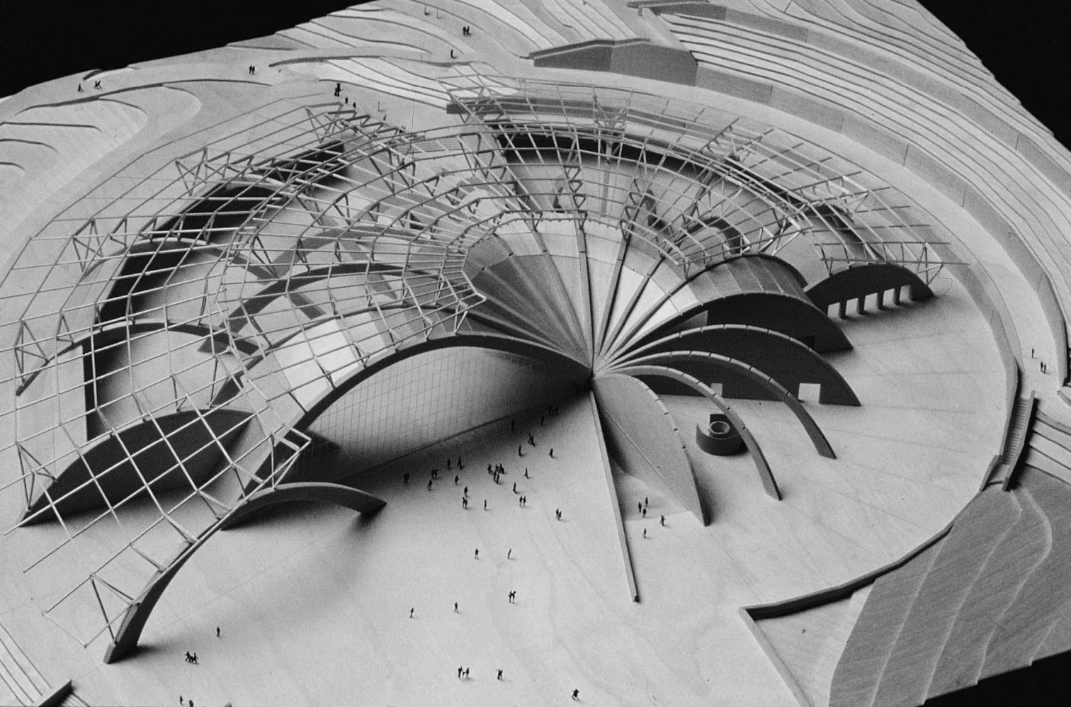 The expected beatification of Padre Pío served as a pretext for the construction of a colossal church with a capacity for 30,000 pilgrims, which Piano designed as a huge space with a spiral directrix, its floor plan opening up like a snail’s shell as the number of devotees grows. Such representation of increasing crowds is achieved through radial arches built with laser-cut, steel-secured ashlar stones and spanning as far as 50 meters: a technical feat that endeavors to be “evocative of the spirit of Brunelleschi,” the Renaissance architect responsible for the dome of the Florence cathedral. Designed by the late British engineer Peter Rice, these extravagant arches – similar to those he contrived with Oriol Bohigas for Seville Expo’s Pavilion of the Future – turn this nautilus-shaped rockodrome into a panoptic fan whose segments guide the eye toward a scenographic hinge, the altar. Still under construction, the church is to be finished by the time the stigmatized Capuchin gets admitted into the company of heaven, joining the busy crowd of holy figures consecrated by the canonizing fervor of the incumbent pontiff, whose total of 270 saints far exceeds the previous record, Pius XII’s 33.