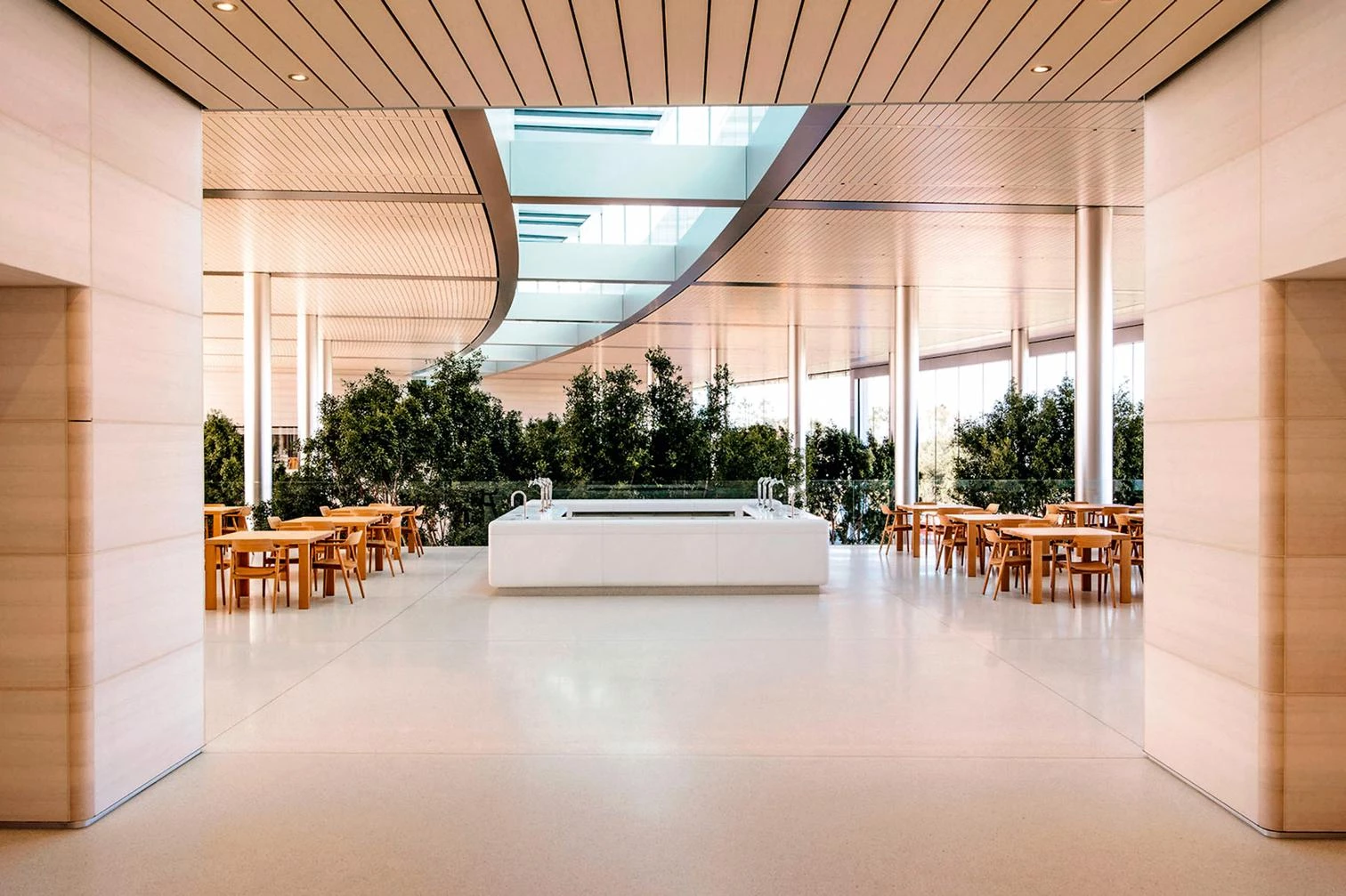 Foster building for Apple unfavourably with the other Silicon Valley giants’ plans. She sees it as looking back to the days when the big corporations like Union Carbide moved out of Manhattan and into purpose-built office complexes in lush suburban Connecticut, and, shortly after, expired of boredom and irrelevance. But those East Coast offices from the 1960s made a clear distinction between work and leisure, between the company’s time and that of the individual. Facebook and Google attempt to re-create the casual informality of fashionable street life within the compound of a security-controlled environment. They are, in a sense, infantilizing their workforces. They see their lives not in terms of home life but as permanent adolescents. The Facebook HQ is like a college town, without any dorms. In contrast, Foster’s highly polished structure, which is inevitably compared to the industrial design of the company’s products, seems to treat its employees as adults. They are working, not in a Starbucks or the lobby of the Ace Hotel, but in a grown-up building, dedicated to research and creative thinking.