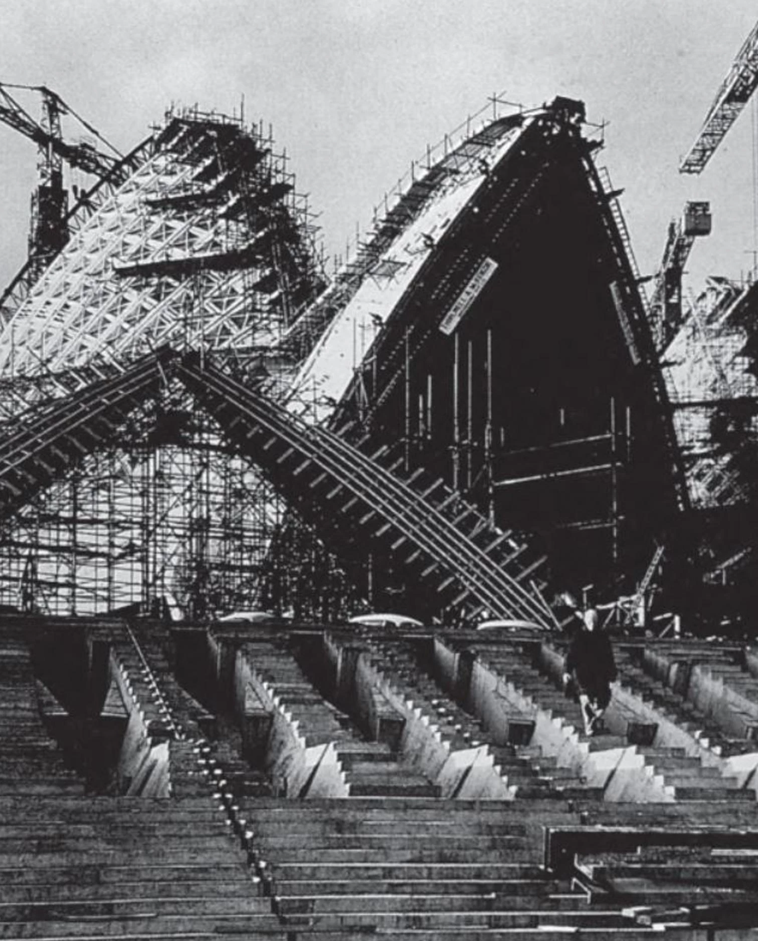 Fromonot ha rastreado todos los archivos del proyecto y la ejecución que quedan en Sidney, ha entrevistado a todos los que estuvieron implicados en la obra y ha rescatado del olvido una magnífica serie de fotos realizadas por Max Dupain para documentar la construcción, presentándolas junto a las maquetas que tan importantes fueron en el proceso y a dibujos hasta ahora no publicados de los muros cortina y del interior de las conchas acústicas. Arropado por las belleza contundente de las imágenes, el relato comprende desde la organización del concurso —una de las primeras grandes convocatorias internacionales que hubo tras la guerra— a la dimisión forzada del arquitecto el 28 de febrero de 1966. La sonora movilización de grandes nombres que se produjo a su favor —desde Kahn a Neutra y Gropius, pasando por Van Eyck, Tange o Doshi— hizo que Utzon recibiera nuevas ofertas para continuar vinculado a la obra, pero no las aceptó. Cerró su estudio y dos meses más tarde, el 28 de abril, dejó Australia para no volver. Bill Wheatland, su ayudante principal, recibiría después una nota donde le pedía que liquidase sus últimos asuntos en Sidney. Era una postal del Yucatán, donde Utzon había escrito: «Estas ruinas son maravillosas, así que ¿por qué enfadarse? Un día, la Ópera será también un montón de ruinas.