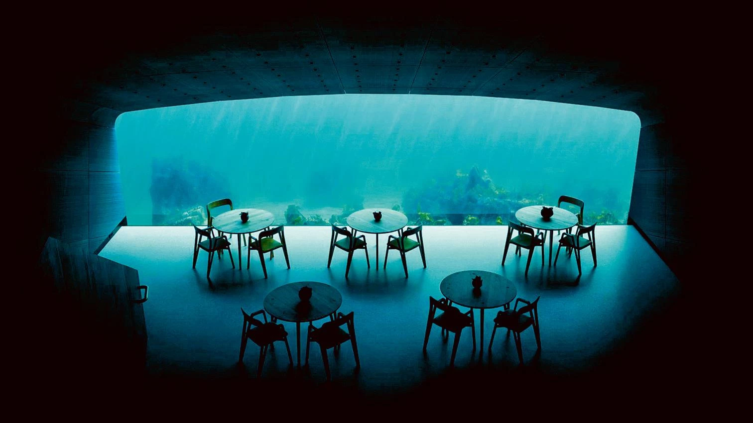 Maybe the lethargy that has taken over our bodies after so much submission to the dictates of the mobile phone has led to the fashion of the even-harder, in a search for radical experiences brought to extremes. This would perhaps explain construction works like the restaurant that the firm Snøhetta has designed and carried out at the Norwegian coast’s rocky southernmost point, known for its marine winds. It’s a monolith whose rough texture makes mollusks and kelp cling to it and thrive, and which dips into the water with the express purpose of treating forty diners at a time to a rather turbid but highly thrilling submarine scene.