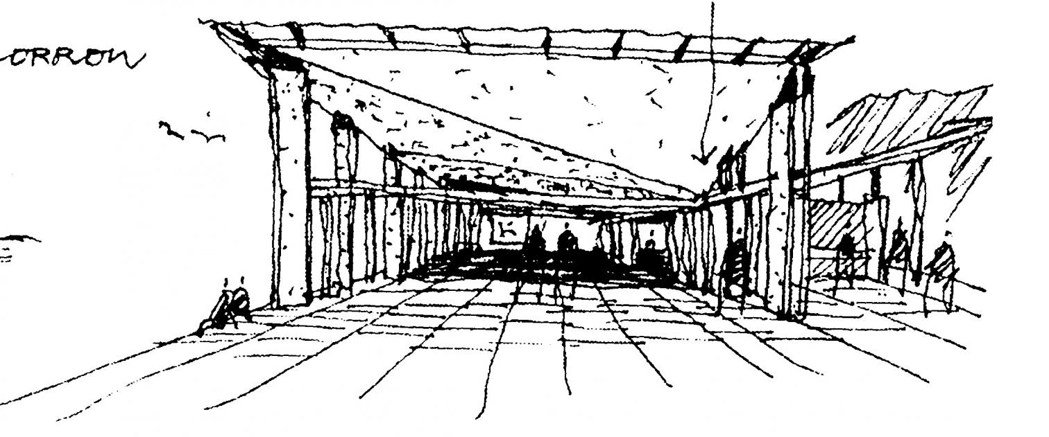 Casi excepciones en la biografía construida de Murcutt, sus edificios públicos tienen la misma factura leve que los de escala menuda. Izquierda, centro de visitantes en Kakadu; abajo, centro de arte de Riversdale.