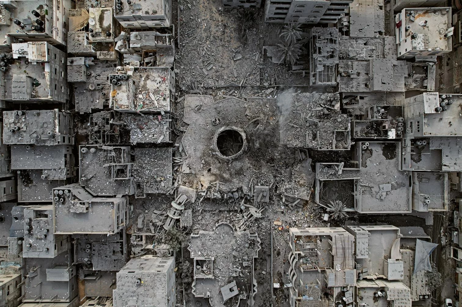 Restos de la ciudad de Gaza tras un bombardeo israelí, 9 octubre 2023. © Mohammed Talatene / Picture Alliance