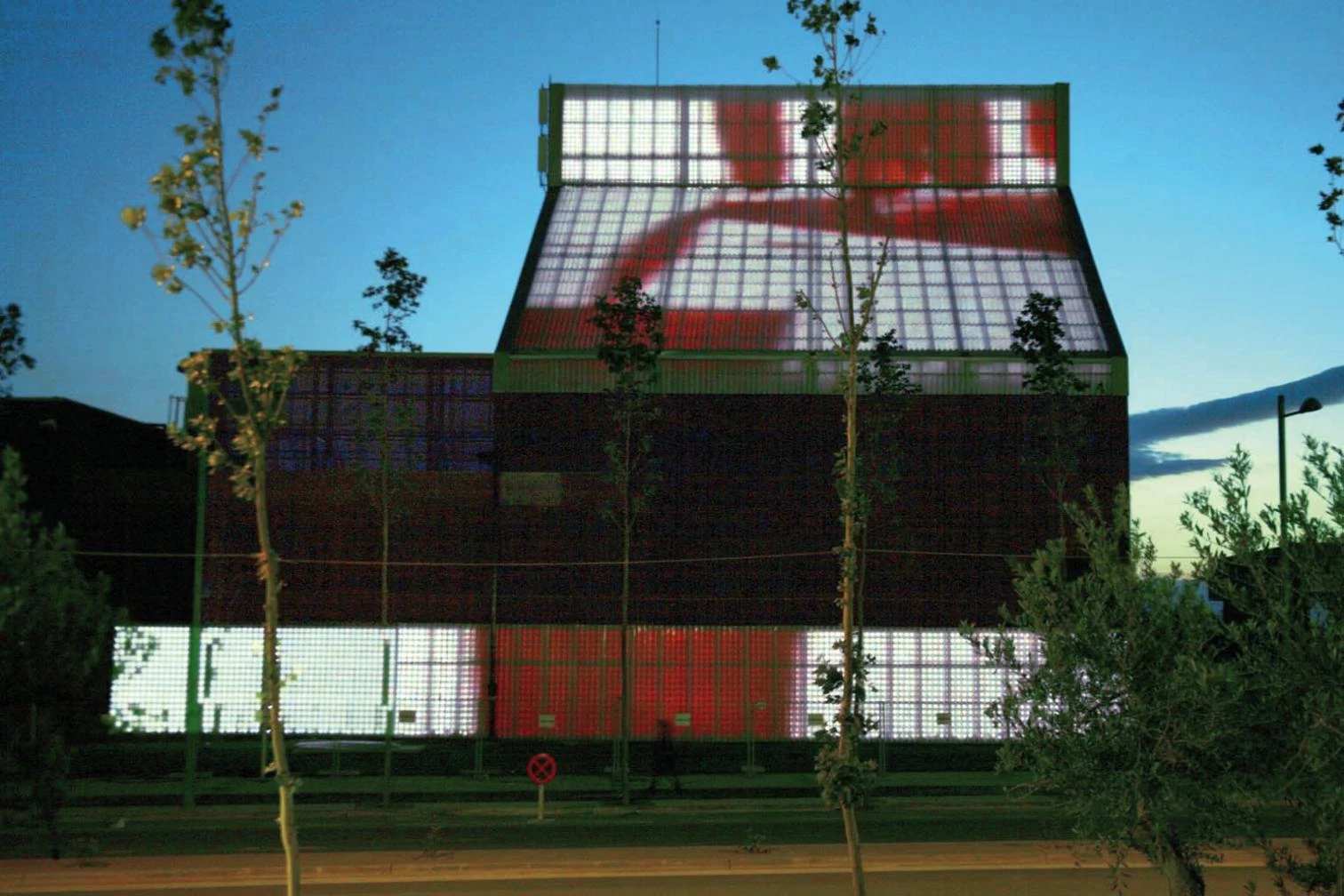 Finalizada la Expo 2008 de Zaragoza, algunos pabellones buscan nuevos usos mientras otros, como la instalación que proporcionaba climatización centralizada a todo el conjunto, los mantienen. Se trata de la central de trigeneración —frío, calor y electricidad—compuesta por un gran depósito de agua y un cuerpo adyacente en el que se encuentra la maquinaria. El edificio, obra de los arquitectos Iñaki Alday y Margarita Jover —autores también del Parque Metropolitano del Agua en el recinto ferial—, es de hormigón gris oscuro. La cubierta inclinada se resuelve a base de planchas de policarbonato ondulado, bajo cuyas ondas se disponen carriles de leds controlados por un sistema que permite generar imágenes. La artista Eulàlia Valldosera ha creado para el edificio la instalación Intercambio, que convierte en un flujo continuo de imágenes, color y textos los procesos de transformación energética que tienen lugar dentro de la central. Hasta el mes de abril se muestra la obra de Valldosera en el MNCARS de Madrid bajo el título ‘Dependencias’.