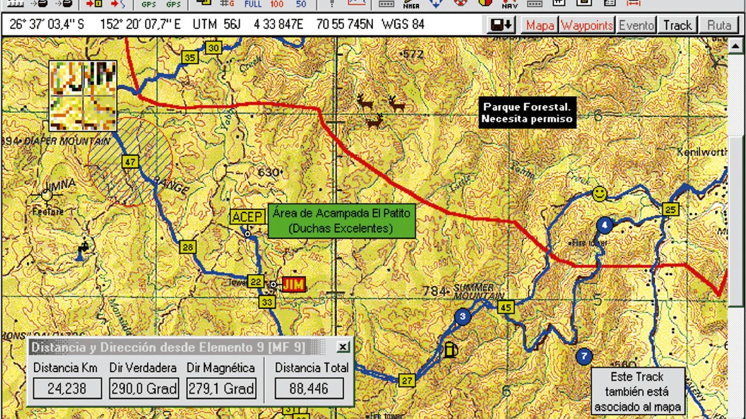 Observemos ahora los aparatos que indican las coordenadas absolutas de nuestra posición, o GPS. Existen modelos que van grabando las coordenadas del recorrido cada tiempo. Cuando llegas a casa, a la vuelta de la excursión, puedes pasarlas al ordenador y, con ayuda de un programa australiano, OziExplorer, se proyectan sobre un mapa cualquiera de la zona, donde ves el recorrido y el tiempo que has estado en cada punto. Ha aparecido el plano de nuevo. Sin embargo, puede ser que alguien realice un trayecto interesante y quiera regalarlo. Internet está lleno de excursiones de ese tipo. Basta con recibir la serie de coordenadas en tu GPS y ponerte en camino: el aparato te va indicando, sin necesidad de plano. Ya ha desaparecido el plano otra vez. Si te pierdes, no importa: llamas al 112 con tu móvil.