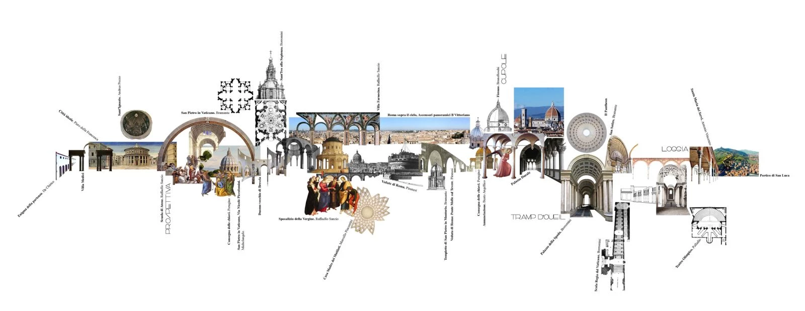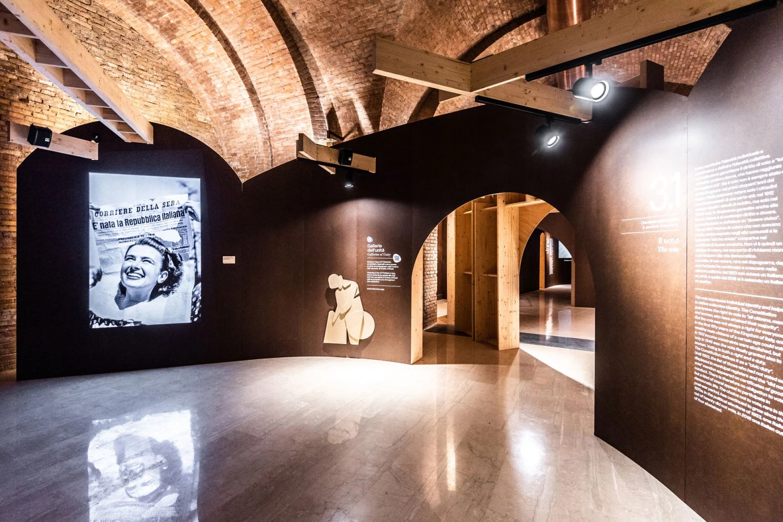 La exposición forma parte de un nuevo plan de desarrollo para el complejo museístico del Vittoriano de Roma —que cuenta actualmente con unos tres millones de visitas anuales—, célebre monumento dedicado a Vittorio Emanuele II abierto en 1911 para celebrar los primeros cincuenta años de la unidad italiana. Ubicada en las antiguas Gallerie Sacconi, en la planta baja del museo, la muestra representa la identidad italiana y sus valores a través de una colección de proyecciones, textos, objetos y obras. Dividido en siete secciones, el recorrido planteado como un viaje ideal por la península itálica está acompañado por estructuras en forma de arcos, bóvedas y exedras, retomando el lenguaje clásico de la arquitectura del país, que están superpuestas a los espacios originales recientemente restaurados, y que sirven de soporte para la instalación de proyectores, audio, luces y cableado.