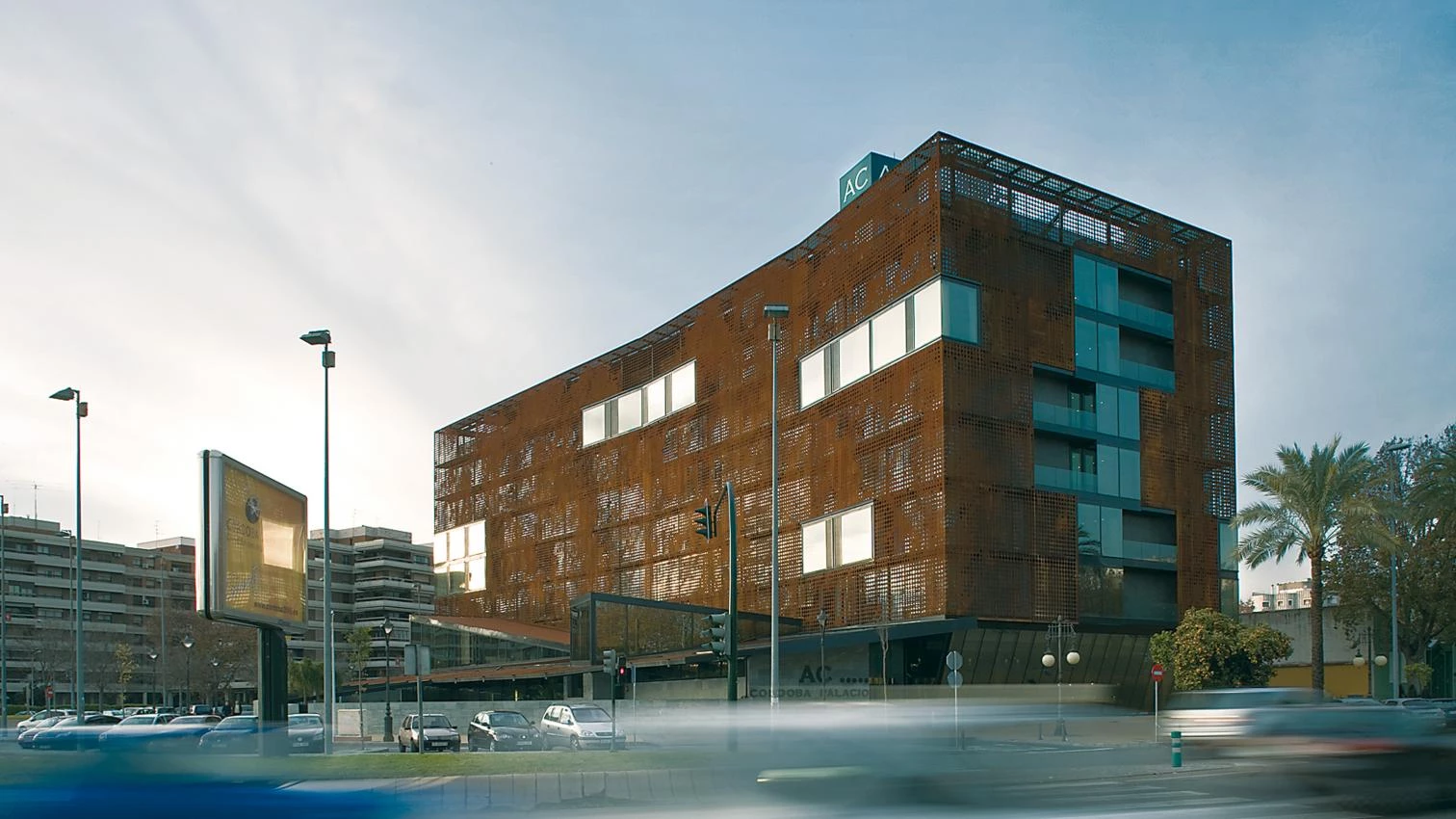 Un revestimiento de planchas de acero cortén perforadas con láser distingue el primer hotel de cinco estrellas de la ciudad califal, firmado por el equipo de Alfonso Casares en colaboración con el estudio Isasi y Pieltain, sobre el solar del antiguo Meliá, el hotel de referencia de Córdoba, ya envejecido e imposible de recuperar. El nuevo edificio disfruta de su enclave en un parque urbano, frente a la puerta de la muralla y muy cerca de la mezquita-catedral, y es al mismo tiempo una caja de cristal y una celosía metálica que lo protege del tórrido verano cordobés.