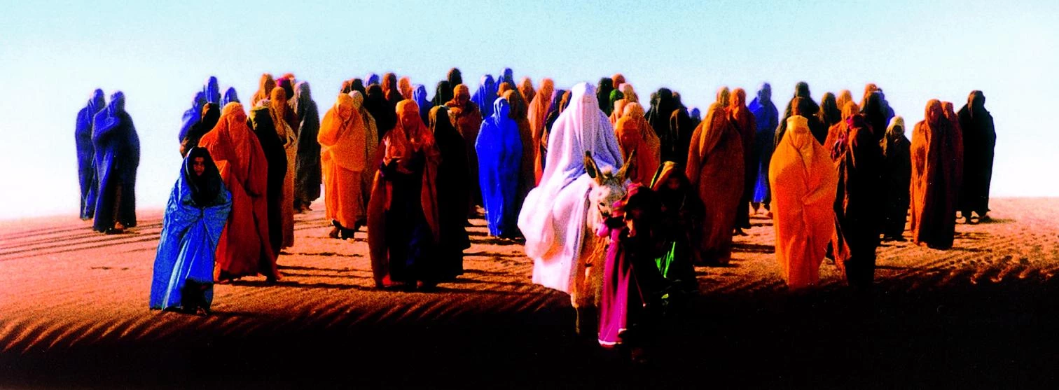 Arriba, imagen de Manhattan con las Torres Gemelas y fotograma de la película Kandahar.