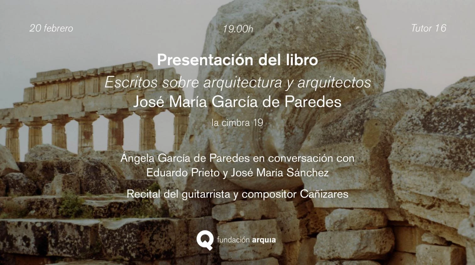 El martes 20 de febrero, con motivo del centenario del nacimiento del arquitecto José María García de Paredes, tendrá lugar la presentación del libro Escritos sobre arquitectura y arquitectos, número 19 de la colección la cimbra, en la Fundación Arquia de Madrid. Ángela García de Paredes, editora del libro, conversará con Eduardo Prieto y José María Sánchez sobre la figura de José M. García de Paredes y, en particular, en esta faceta menos conocida de sus escritos. (Inscripción gratuita)