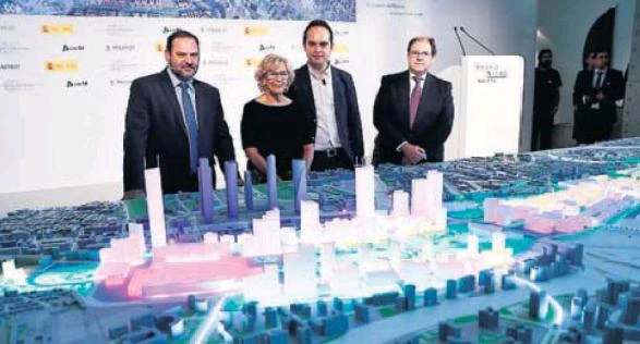 La alcaldesa de Madrid Manuela Carmena y el ministro de Fomento José Luis Ábalos, durante la presentación de la maqueta del proyecto Madrid Nuevo Norte el pasado julio. MARISCAL (EFE)